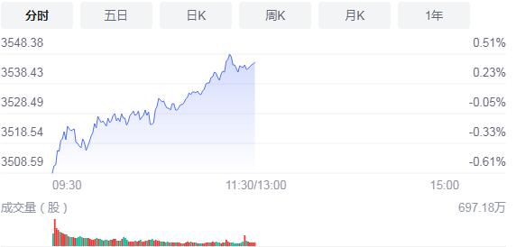 截止午間收盤,滬指漲0.44%,報3545.65點,深成指漲1.56%,報14895.94點,創業板指漲3.25%,報3398.96點。滬深兩市合計成交額6112.7億元;北向資金實際淨流入37.5億元。兩市72股漲停,5股跌停(含ST股)。
