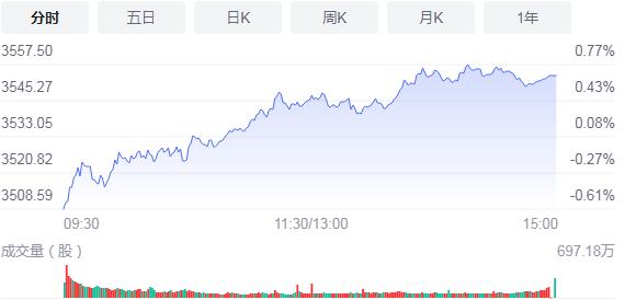 截至收盤,滬指漲0.66%,報3553.72點,深成指漲1.86%,報14940.05點,創業板指漲3.57%,報3409.59點。滬深兩市合計成交額10505.1億元;北向資金實際淨流入43.72億元。兩市98股漲停,9股跌停(含ST股)。