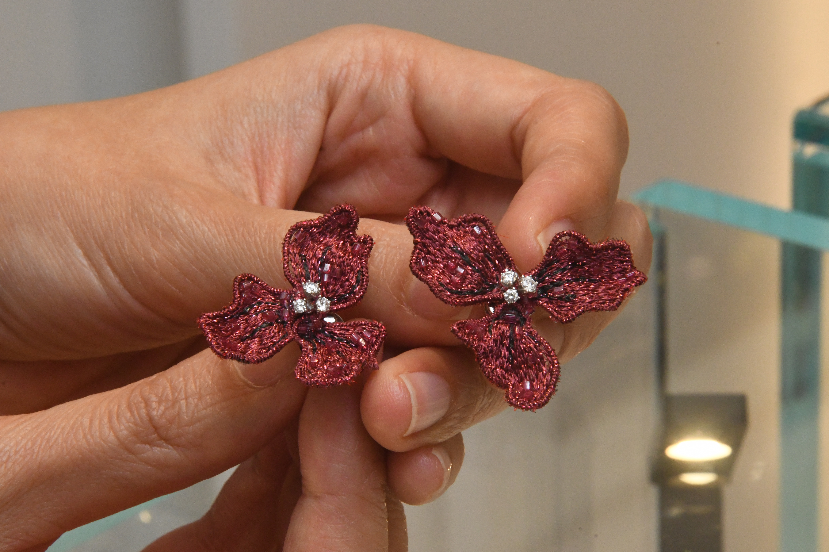 同樣,在業餘時間學習油畫的王淑筠,對文化藝術也有着非常濃厚的興趣。家族生意涵蓋珠寶業的她,亦有參與設計珠寶款式和管理工作,對藝術和美感的敏銳度幫助她更好地捕捉產品特色,把珠寶和刺繡結合。其中以夢為主題的18K金珠寶蝴蝶胸針系列,便是品牌的特色產品,深受顧客喜愛。