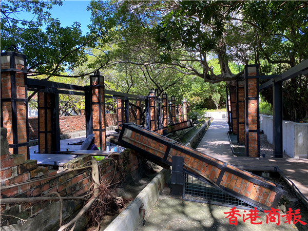 位於土瓜灣的牛棚藝術公園於2019年9月啟用,佔地六千平方米,經活化及改建牛棚後方用地而成,是文青影相打卡的好去處。公園設計以牛棚歷史為主題,保留了不少牛棚獨特的建築及設施,包括紅磚柱區、水井和牲口棚遺跡等。(馮俊文 攝)