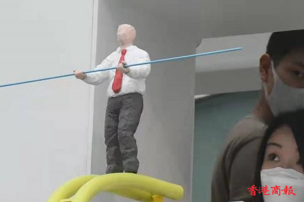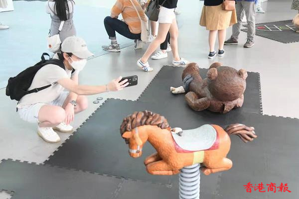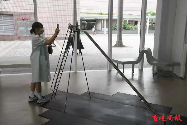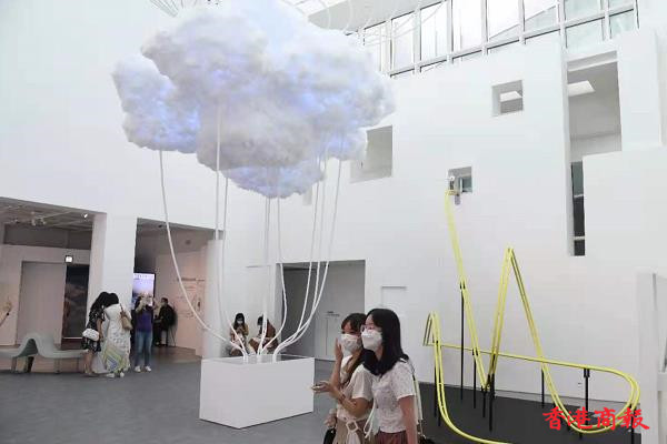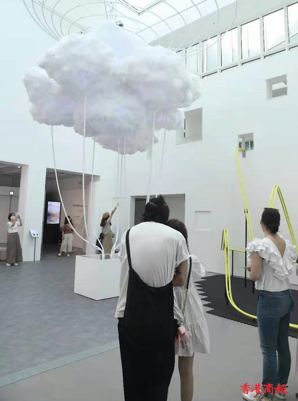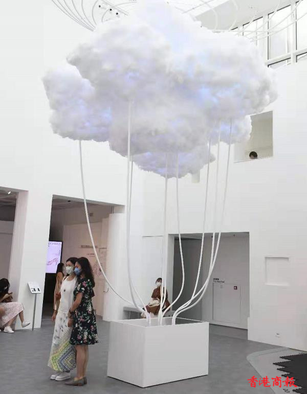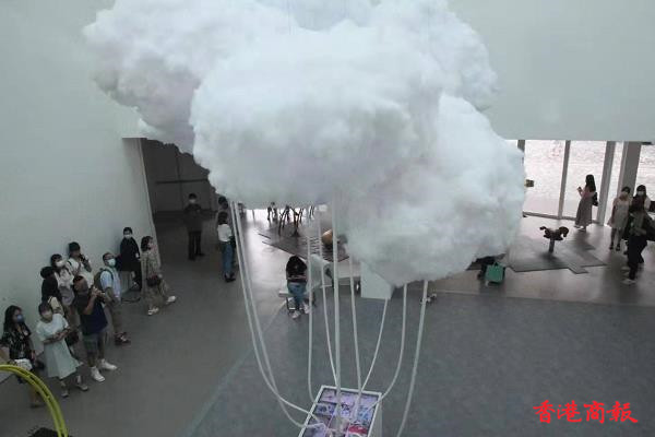 藝術館入面打卡嘅熱點,就係由本地藝術家林嘉欣創作的《雲圖景象》, 白雲以棉花製作成雲層圖案,吸引大批市民到場參觀。(記者 蔡啟文攝)