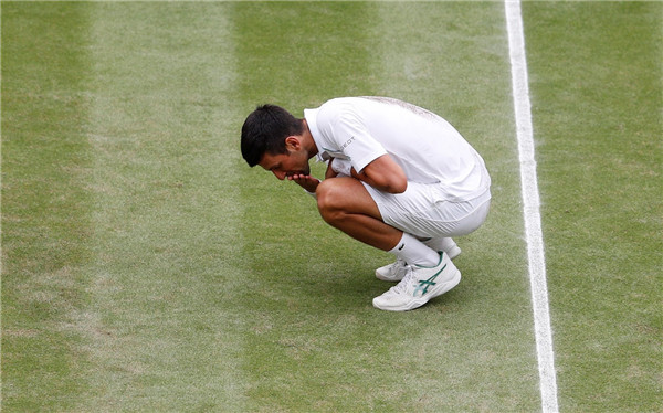 當地時間7月11日,塞爾維亞球手祖高域贏得英國溫布頓網球公開賽男單冠軍。祖高域還吃掉球場上的草進行慶祝。