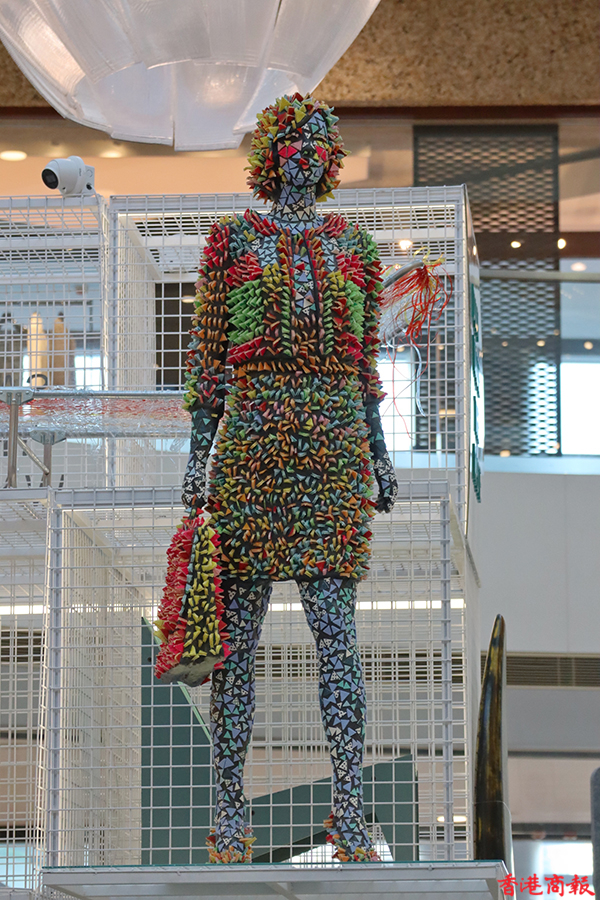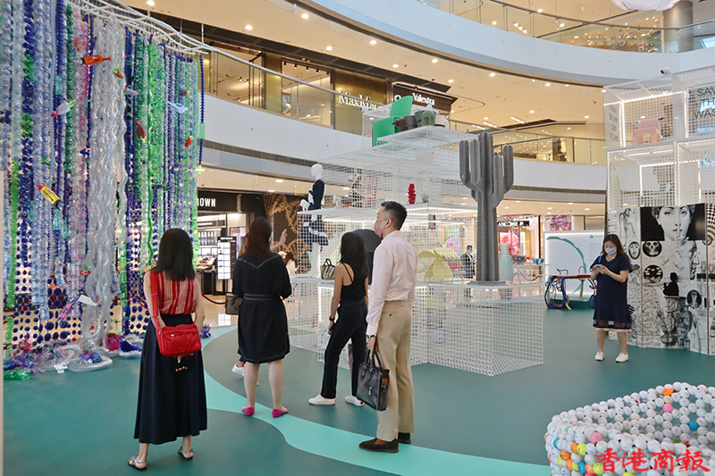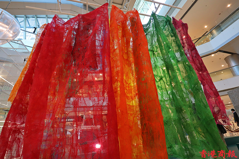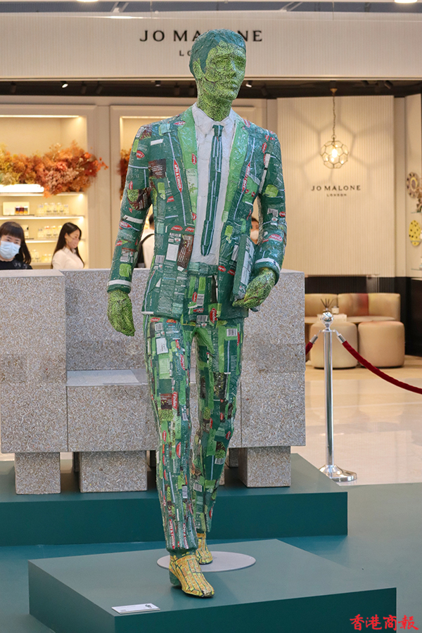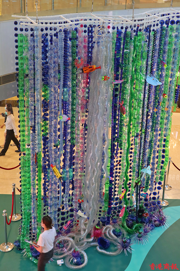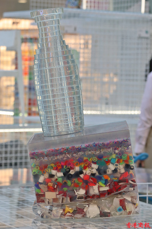 展覽分為多個主題,以「走向綠色」開始,讓大家觀賞一系列綠色藝術品;還有「Ro 塑膠無罪」全球企劃獲獎者的作品,亦是 Rossana Orlandi 的「Ro 塑膠無罪」計劃的一部分,以激勵全球設計師使用可重用和回收物料;現場還有以海洋保育為主題、由可回收廢物製成的「Re-waste」藝術作品,通過藝術突出海洋污染的不利影響。(記者馮瀚文攝)