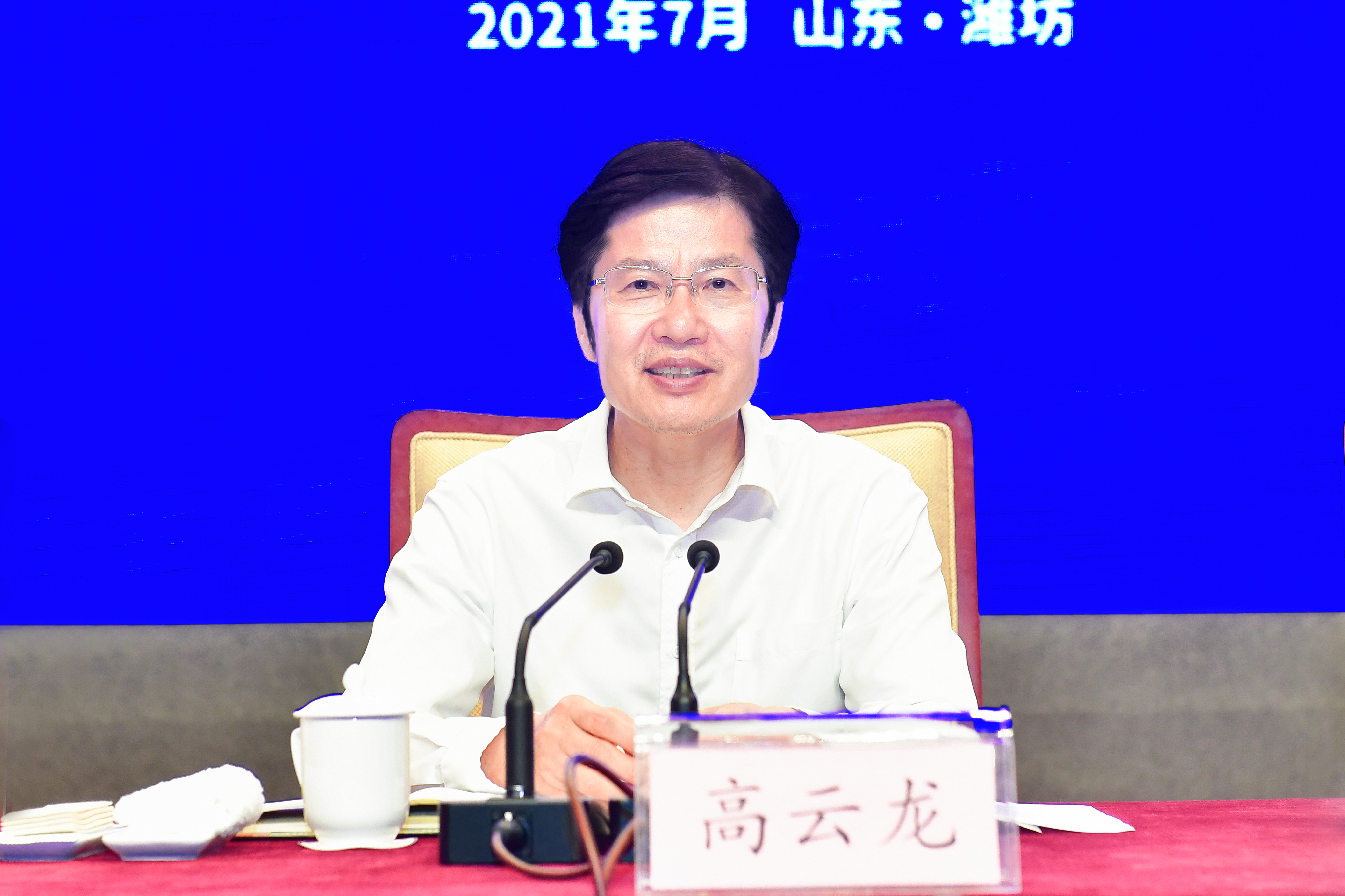 山東省委副書記、省長李干傑致辭。中央農辦主任、農業農村部黨組書記、部長唐仁健,中央農辦副主任、國家鄉村振興局黨組書記、局長王正譜,中國農業發展銀行副行長徐一丁,中國農業銀行副行長崔勇出席會議並講話。全國工商聯黨組副書記、副主席樊友山傳達中央領導同志批示。全國工商聯副主席、中國光彩會副會長謝經榮主持會議。