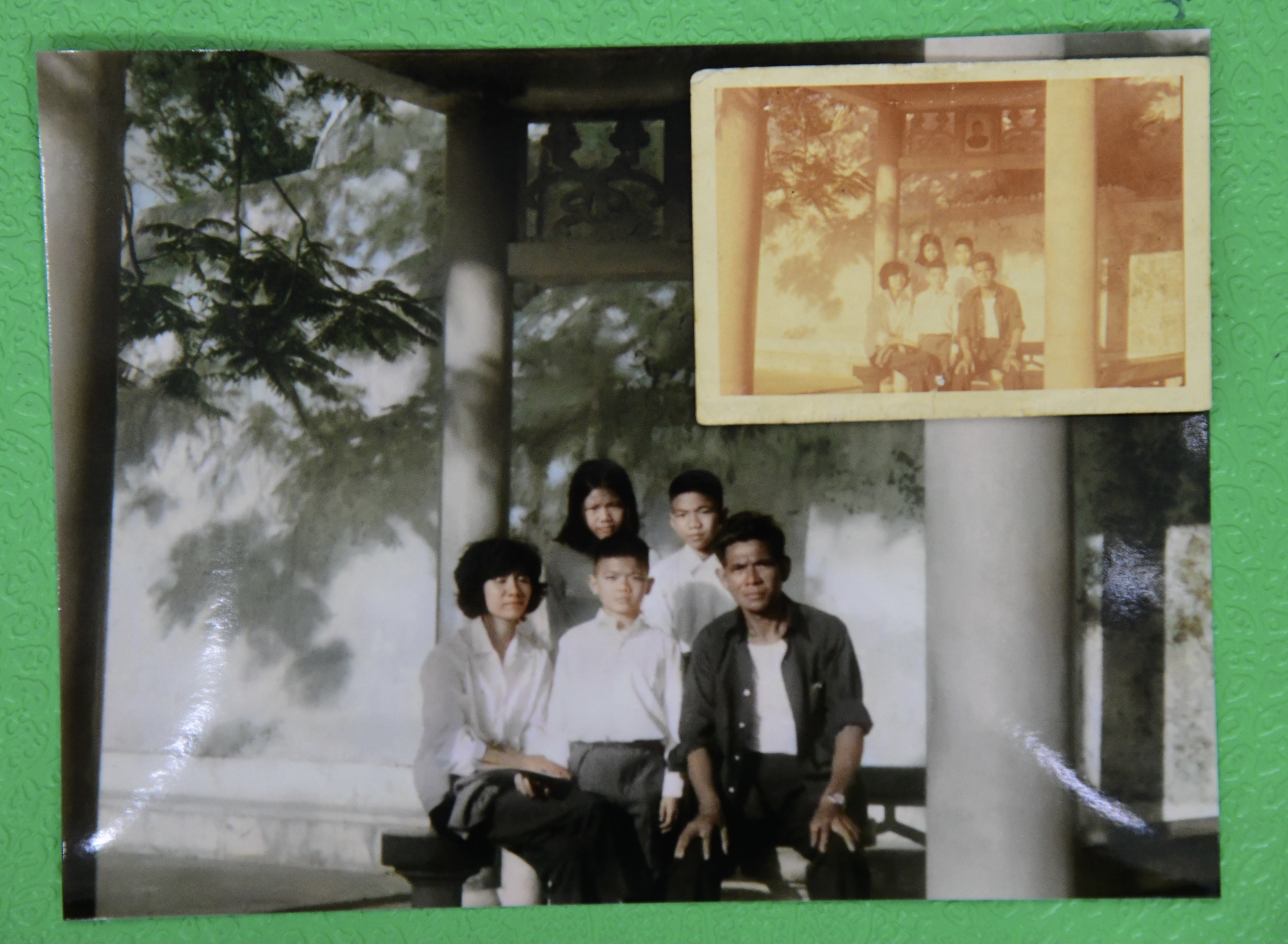 柯銘峰從事修復照片工作逾10年,期間遇見形形色色的客人,聽過林林總總的故事,每次跟隨客人重溫相中舊人舊事舊物的描述,總有一種「回到」那個時代的感覺。採訪當天,記者遇上前來取照片的李先生,今年61歲的他,隨身攜帶一張小學時拍攝的全家福,照片只有手掌大小,長期藏於銀包內,早已泛黃,相中人的樣子亦開始模糊。他於店舖附近看到廣告牌,抱着一試無妨的心態來找柯銘峰。李先生說:「照片是什麼時候拍的、原本是黑白抑或是彩色的?我已經記不清了。只記得是在萬佛寺拍的,當時的景觀和現在相差很遠了。你看,站在後面的瘦小子就是我,和現在的體形差別很大吧!這張是家裏僅存小時候的全家福。我的爸爸已經去世,媽媽亦87歲了,這也是唯一一張父母年輕時的合照,對我來說十分珍貴。」