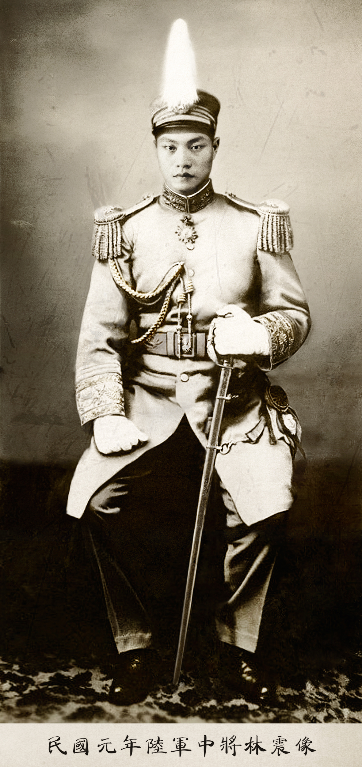 柯銘峰於林震將軍的「照片」內加入後人保存的劍,令造型更神似。