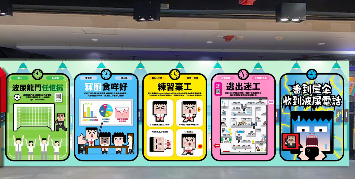 「打工仔日常打卡牆」繪畫出打工仔每日不同時段遇到的難題,必會成為大家尋找共鳴的熱點。
