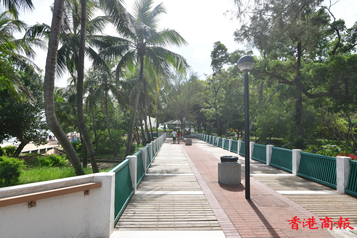蝴蝶灣公園內,路旁兩邊都栽種了大量樹木,只要在樹蔭下步行也倍感舒適。走到附近的蝴蝶灣海灘,更是不少人特意前來趁黃昏看日落、海天一色的景象,感受那種恬靜。旁邊有全港最大型的燒烤埸,也有不少人前來燒烤玩樂,在這海邊美好景色下,確是讓人周末鬆一鬆的好地方。(崔俊良攝)