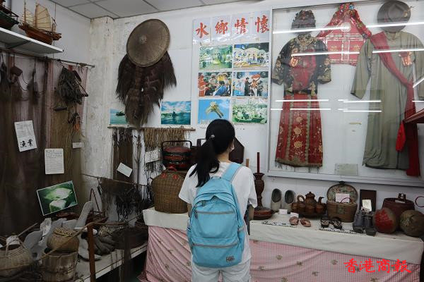 「大澳鄉事委員會歷史文化室」可說是大澳的迷你博物館,內裏的展品都是由村民贈送,整個展館面積不大,展品大都是上個世紀四五十年代甚至更早期的物品。其中有村民賴以為生的捕魚工具,包括防風設計的風燈、搭棚裝船用的平水尺和手動木鑽;另外也有他們的日常生活用品,比如上世紀50年代的結婚禮服、水上人的服飾、燒炭的燙斗、昔日涼茶店大銅壺等。透過展品、舊照片及海報等介紹,可以更深入了解大澳的歷史與文化。(記者 馮瀚文攝)