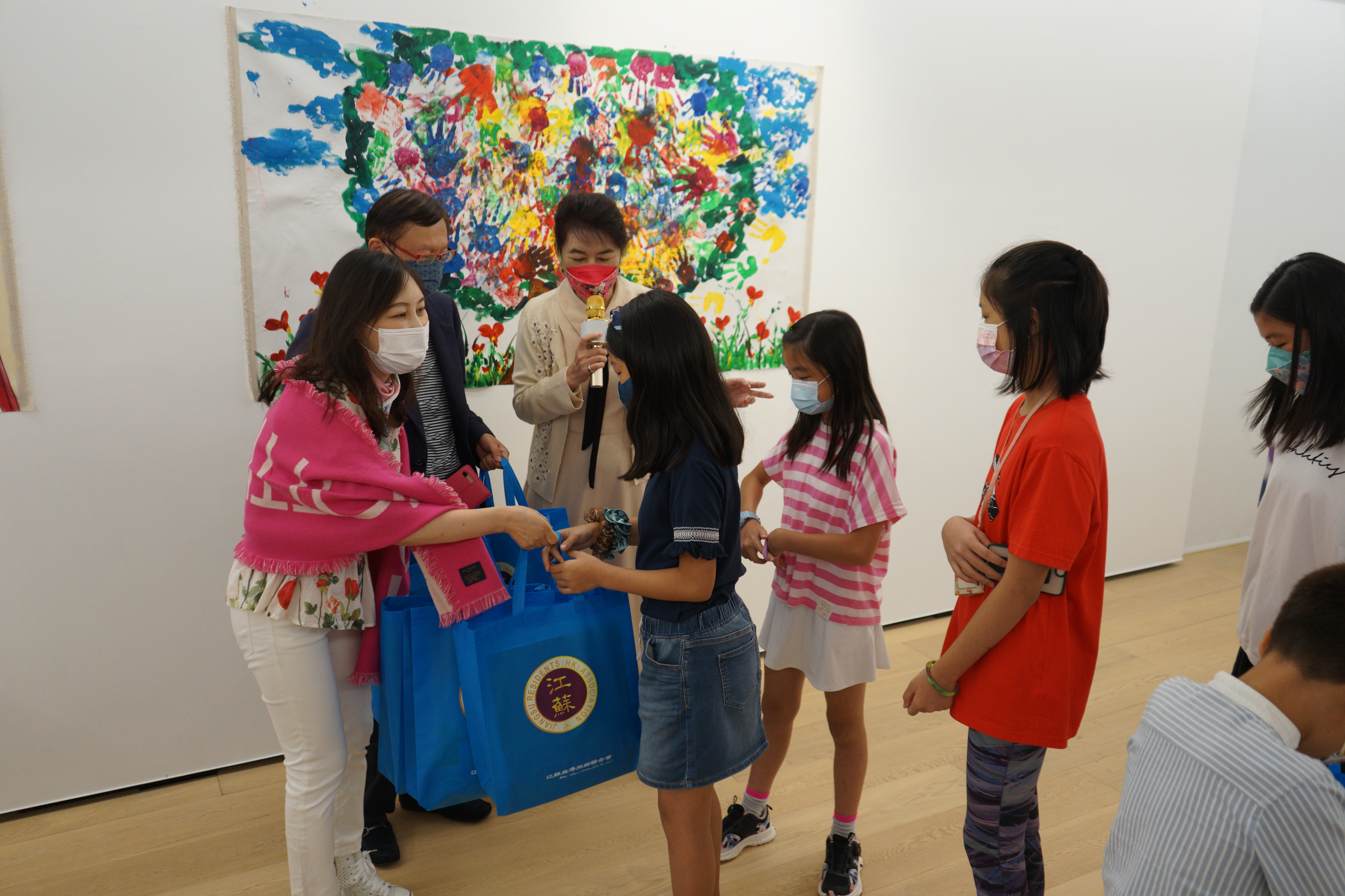 曹曉燕表示,參展小朋友們有21個來自香港、17個來自深圳,年齡介乎4至14歲。除個人畫作外,還有兩幅分別由兩地小朋友共同創作的巨型畫作。現場的福袋禮物則包括了口罩和歷史書籍,希望小朋友們健康成長,學習歷史,熱愛祖國。