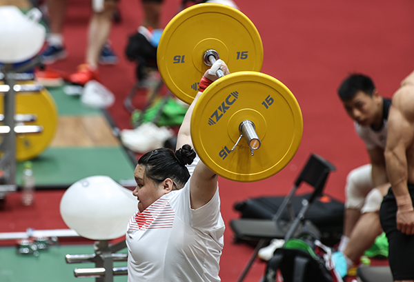 出戰女子舉重87公斤以上級的李雯雯,積極備戰提升狀態。