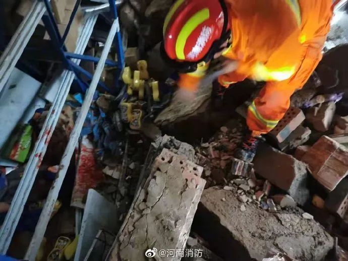 7月20日晚,河南鄭州二七區黃龍崗附近一倉庫塌方,現場3名工人被困,鄭州市消防救援支隊消防員趕赴營救,成功救出3人。