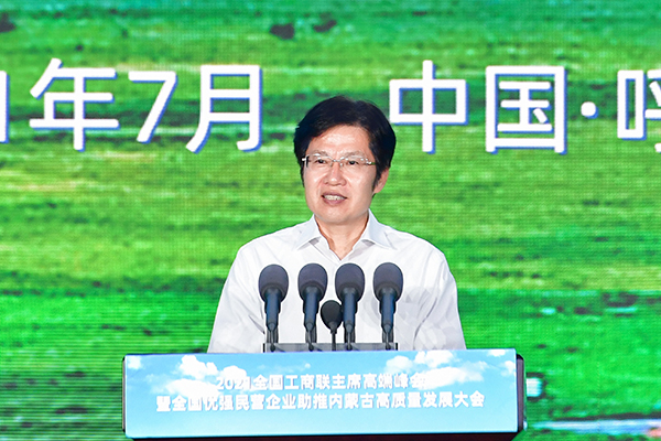 7月20日,2021全國工商聯主席高端峰會暨全國優強民營企業助推內蒙古高質量發展大會在呼和浩特召開。全國政協副主席、全國工商聯主席高雲龍作主旨講話。內蒙古自治區黨委書記、人大常委會主任石泰峰致辭。中央統戰部副部長、全國工商聯黨組書記、常務副主席徐樂江,內蒙古自治區黨委副書記、自治區主席布小林,自治區政協黨組書記、主席李秀領出席會議。