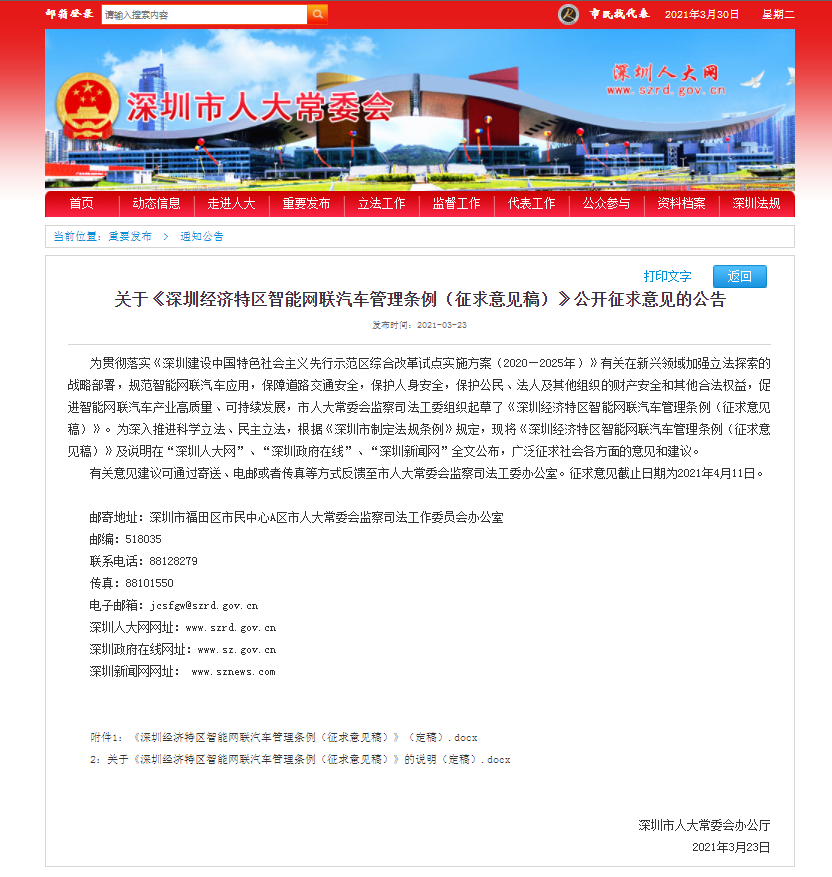 3月23日,《深圳經濟特區智能網聯汽車管理條例(徵求意見稿)》在「深圳人大網」「深圳政府在線」「深圳新聞網」公開徵求社會公眾意見,進一步放寬智能網聯汽車道路測試和示範應用相關條件,其中明確「市政府可以選擇車路協同基礎設施較為完善的行政區全域開放智能網聯汽車道路測試、示範應用及商業化試點」。這一政策的出台,為產業發展破除了制度障礙,進一步助燃深圳智能網聯汽車產業的火熱發展,智能網聯產業現已成為坪山區轉型升級的重點發展方向之一。