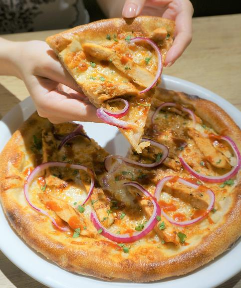 薄餅選用美國直送配料,包括馬蘇里拉芝士、果木煙火腿、薄餅醬汁及海鹽等,並使用美國火山石製成的焗爐,能在短時間內焗成香脆薄餅。原味燒烤雞肉薄餅是餐廳最具代表性的口味,以芝士、紅洋蔥、芫茜和雞肉製成,是經典的加州風味。若想更加豐富,可加配果木燻煙肉或菠蘿。嗜辣的食客可以選擇水牛香辣雞肉薄餅,雞肉用水牛醬汁醃製,配上芝士、甘筍、芹菜和藍芝士沙律醬,又香又辣。另外,餐廳有多款素食薄餅選擇,更推出椰菜花餅底代替傳統薄餅底,令食客享受薄餅時也能攝取蔬菜營養。
