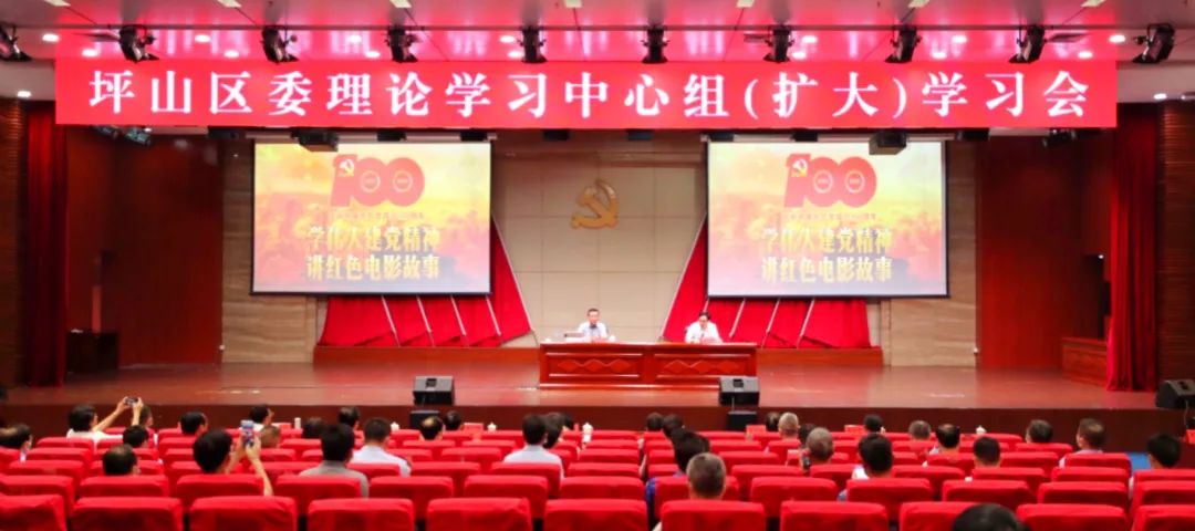 7月29日下午,深圳市坪山區召開區委理論學習中心組(擴大)學習會。這次學習會特別邀請中國電影集團副總經理兼藝術委員會主任、中國當代電影藝術領軍人物之一、著名電影導演江平,以「學偉大建黨精神·講紅色電影故事」為主題,為黨員領導幹部授課輔導。