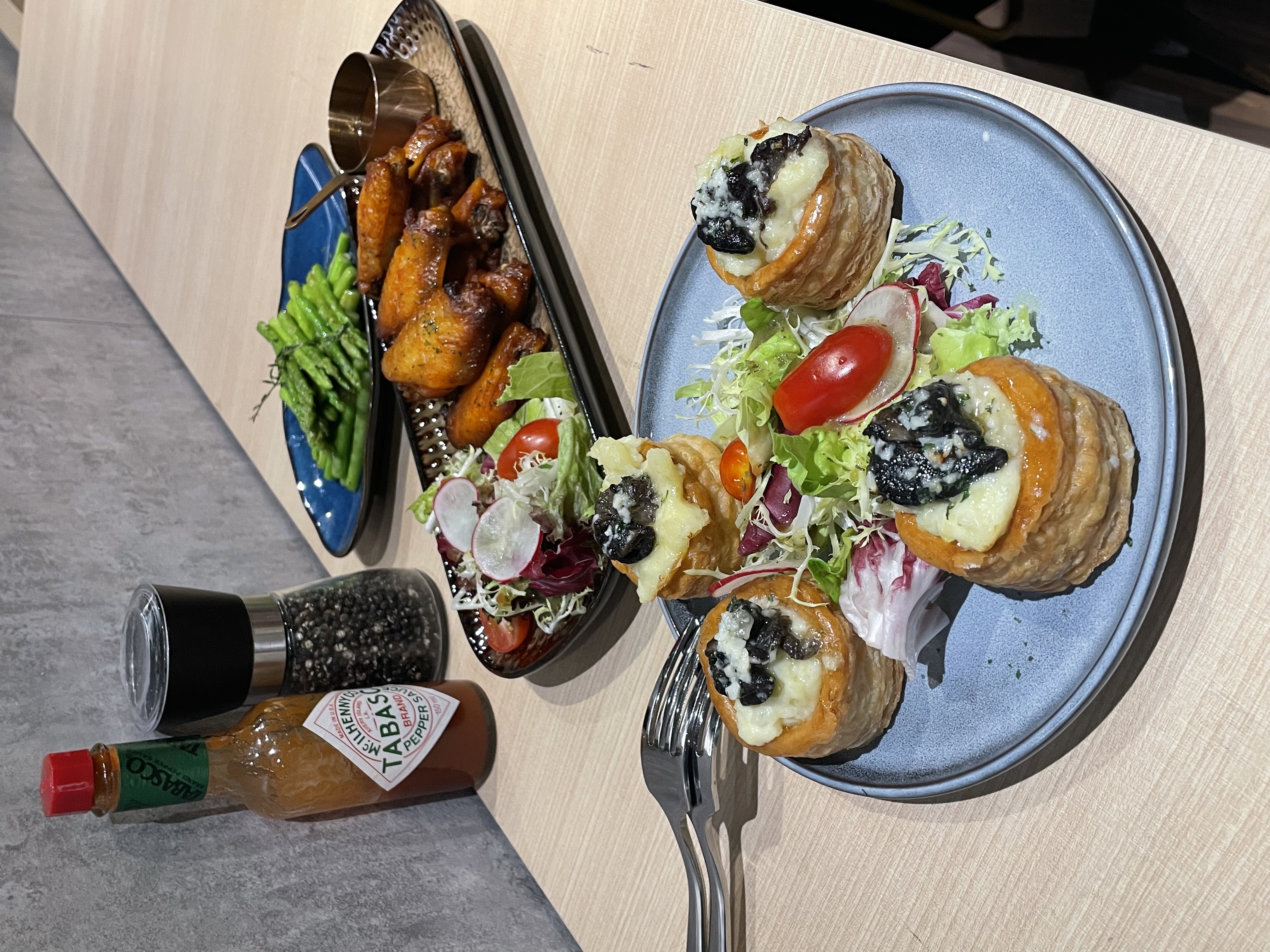 前菜和小食點了洋蔥湯(Onion Soup)、脆炸羽衣甘藍(Kale Chips)、香烤雞中翼(Barbecue Wings)、香蒜白酒煮青口(Mussels in White Wine Sauce)和法式田螺焗酥皮盒(Vol-au-Vent d'Escargots)。洋蔥湯酸甜可口十分開胃,羽衣甘藍酥酥脆脆、雞中翼的醬汁鮮香中帶着一絲清爽,最驚艷的當屬青口和酥皮盒。酥皮盒上的田螺肉質軟滑彈牙,香脆的酥皮和薯蓉咸香酥脆,味道令人回味。