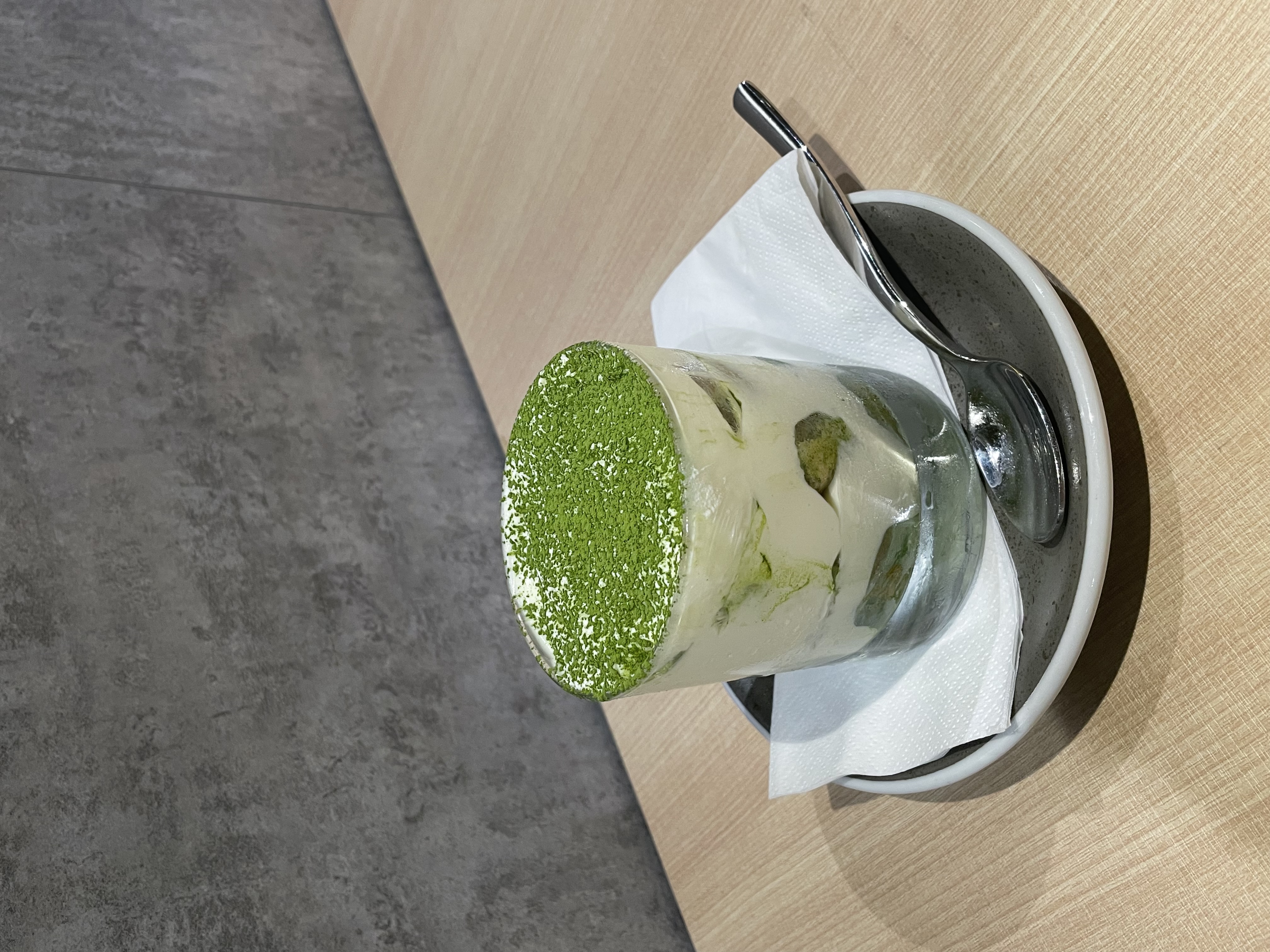 飲品方面,記者點了一杯抹茶拿鐵(Matcha)和髒咖啡(Dirty),抹茶拿鐵的表面茶味濃厚,與熱咖啡相得益彰;髒咖啡的混合、流動質感顯示出奇特的賣相。