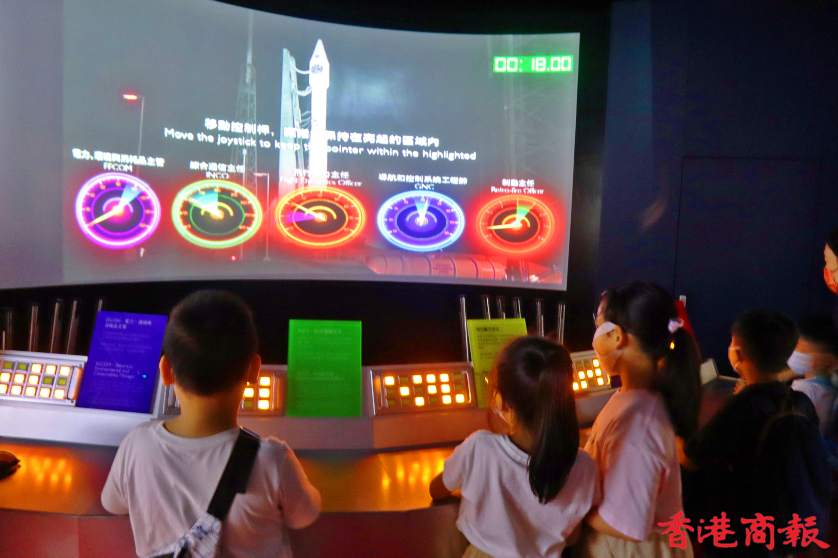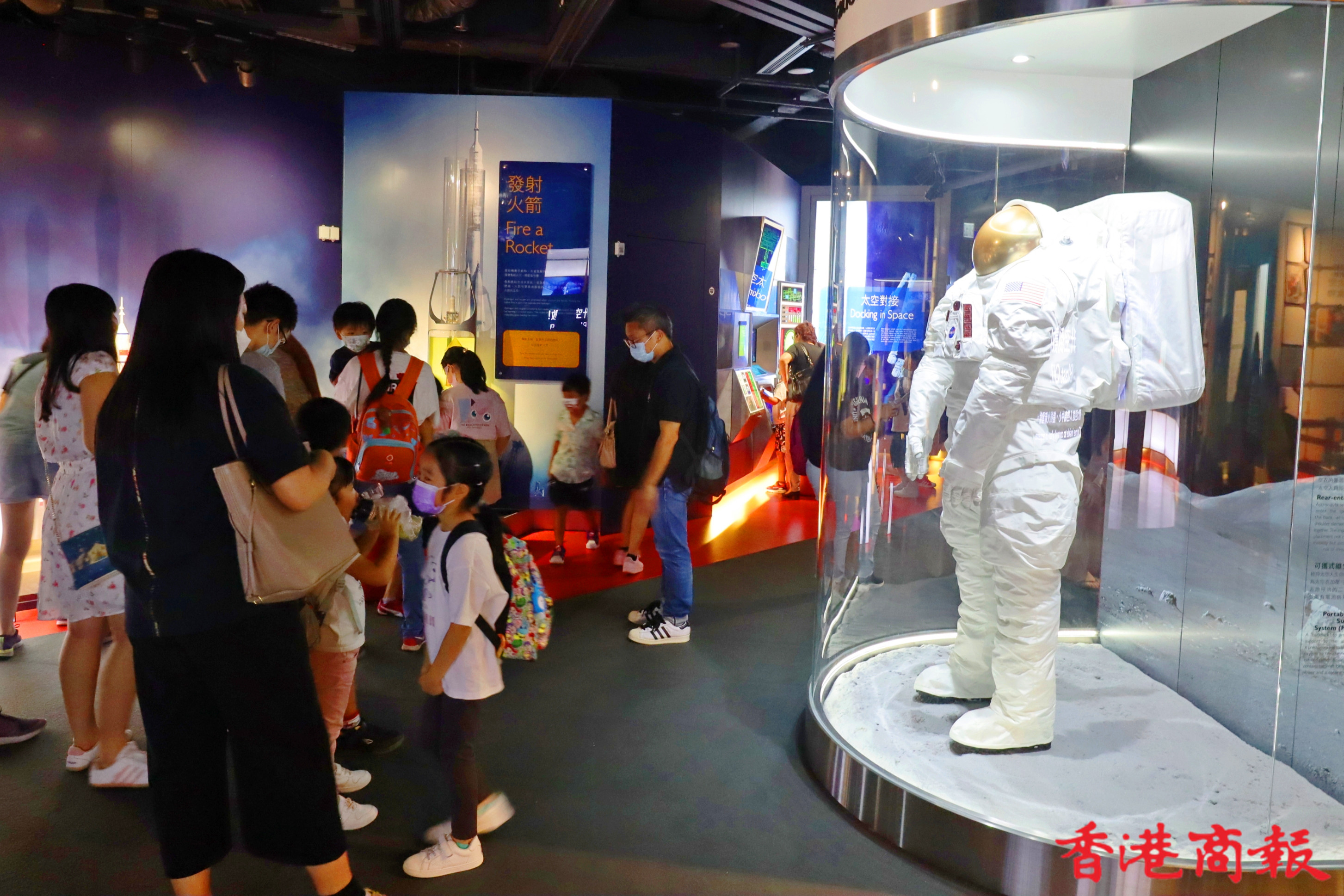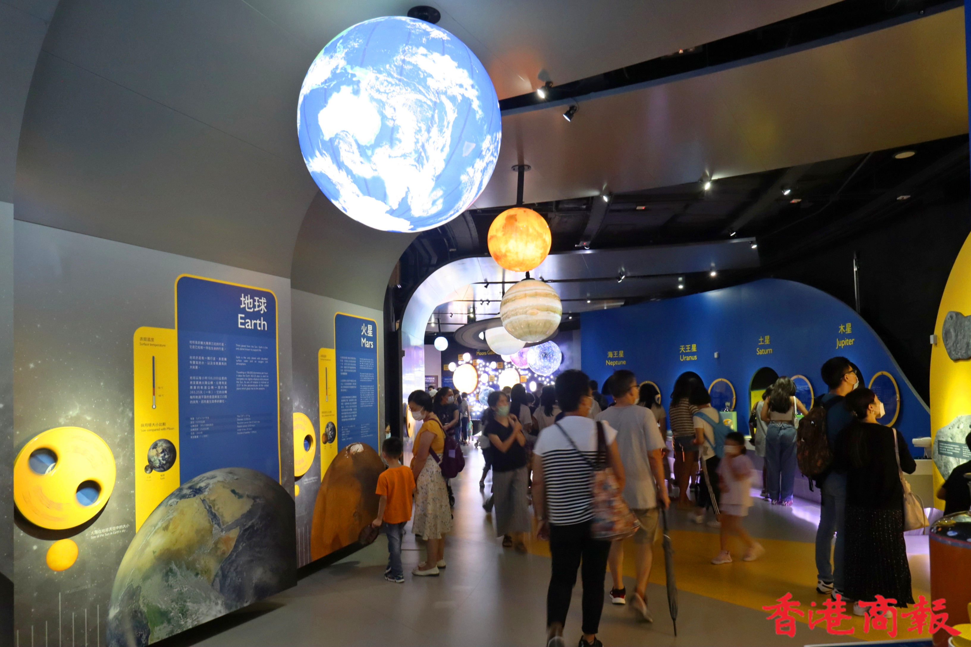 展覽透過有趣的互動展品,配合燈光效果和環境布置,讓市民了解更多天文及太空科技新知。(馮瀚文攝)
