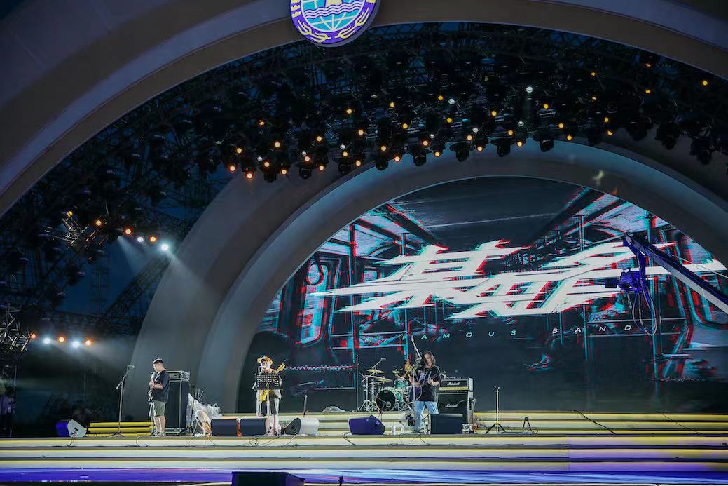 「安可!安可!安可!」台下觀眾揮舞手中的熒光棒,紛紛要求「再來一首」。7月20日晚8點,中國老牌搖滾樂隊「面孔」在金沙灘啤酒城中心舞台激情開唱,為觀眾們帶來了一場極為震撼的聽覺盛宴。