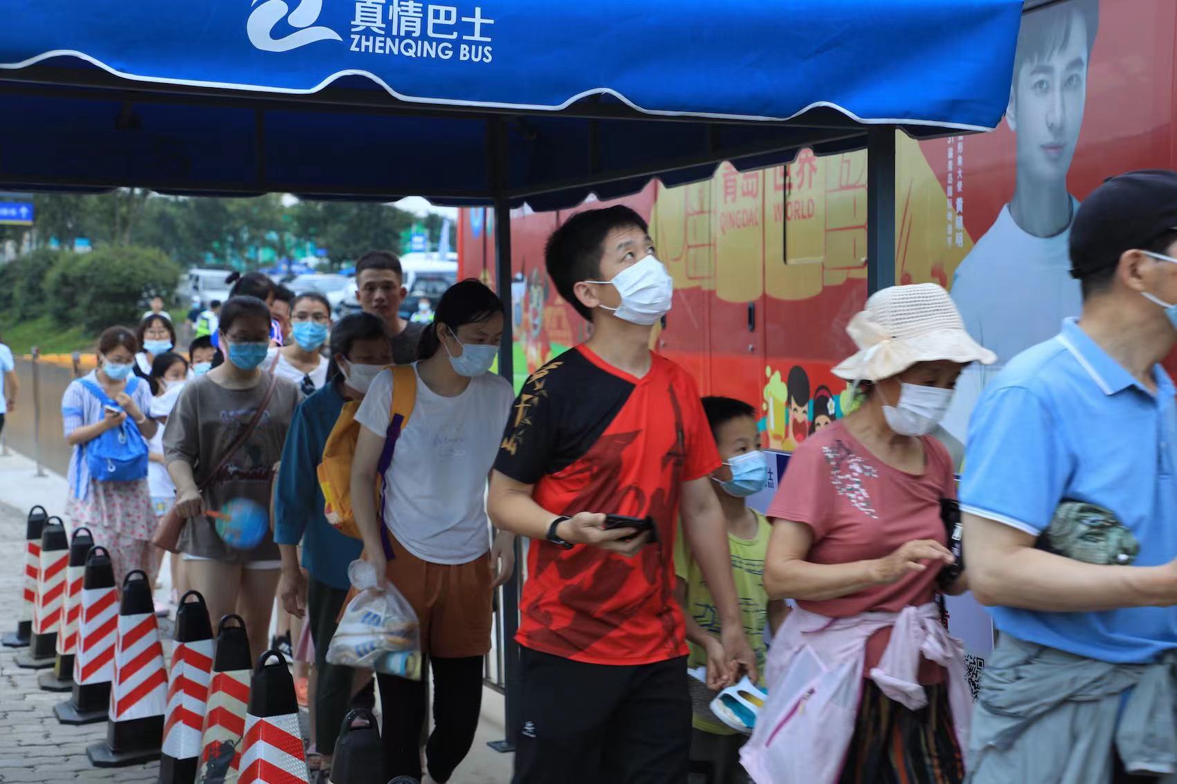 為了讓遊客更方便地停車,啤酒城周邊共設置18處停車場,停車場的實時數據還接入了「青島一碼通」,市民遊客可實時查看剩餘車位數據。在金沙灘啤酒城公交樞紐站,真情巴士運載高峰達到單日乘車近10萬人,每日排隊乘車秩序井然。場站內,7處公交站點均有明確標誌標識,每條線路乘車口都有工作人員和公交志願者幫助疏導秩序。「大家都非常自覺地排好隊伍,依次等待乘車,文明交通程度非常高。」來自濰坊的遊客王先生表示。