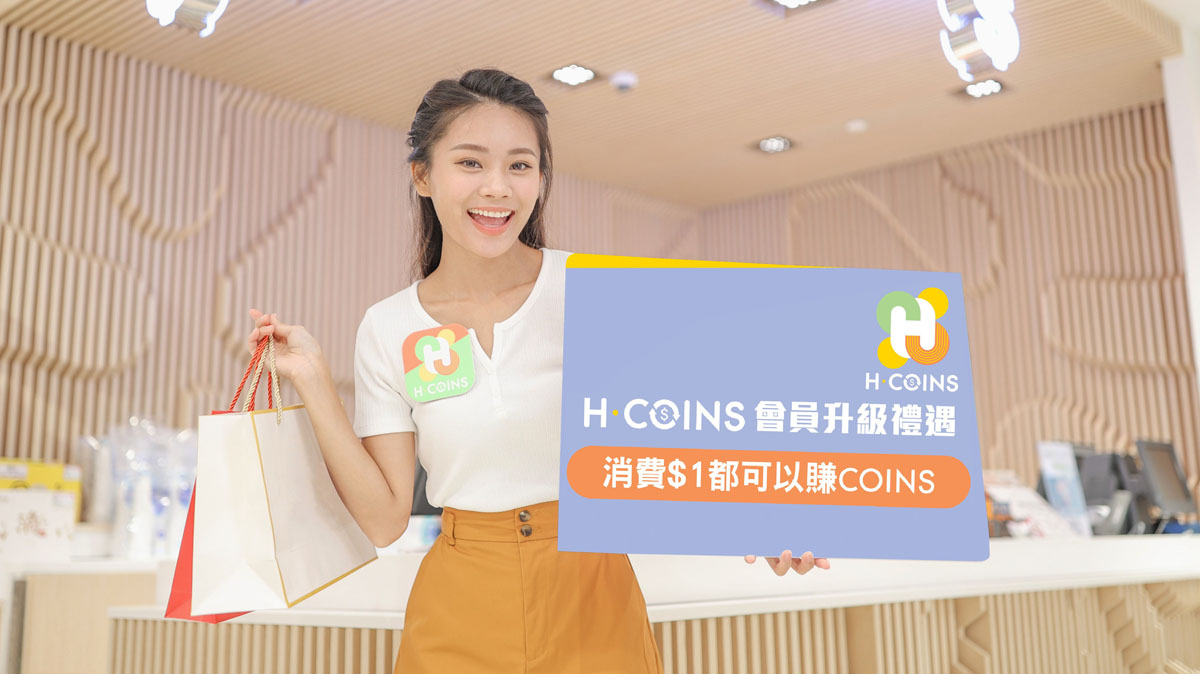 由明天起商場會員計劃H‧COINS推出全新升級會員儲 COINS禮遇,會員憑每張電子消費機印發票,買滿HK$1即可以賺取COINS,換領商場電子禮券以及各式商場獎賞和禮品。