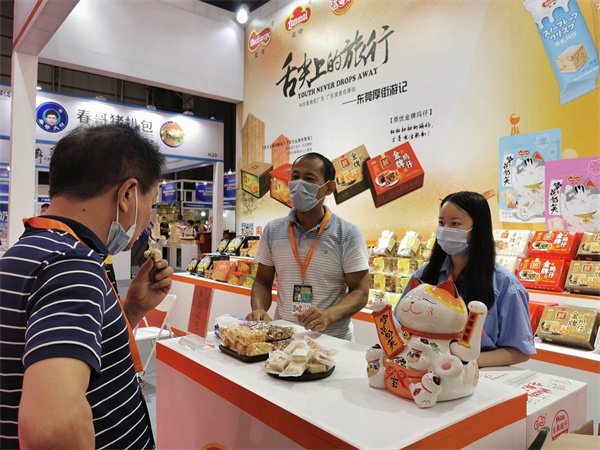 而另一家東莞本土品牌同發食品則是展出了多款受年輕人喜愛的休閒食品,紅糖瑪仔、雪花奶芙等。據該公司展會負責人陳耀華介紹,公司經營食品行業逾30載,產品從加工本地臘味到開發出迎合年輕人口味的休閒食品,同時在選料、配方上科學、健康搭配,諸如用進口棕櫚油代替以往的動物油,讓食品更健康及食客更開心,開發多種口味的瑪仔、奶芙給食客提供多種選擇,小份包裝亦可避免食品浪費。