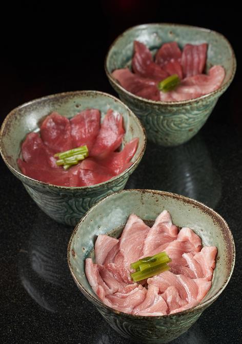 餐廳有多款吞拿魚魚生飯可供選擇,有大拖羅丼(前)(HK $368)、中拖羅丼(中)(HK $338)、山幸三色丼(赤身、中拖羅、大拖羅)(後)(HK $390),拖羅由有「金槍魚の王」美譽的日本山幸集團(Yamayuki)提供。