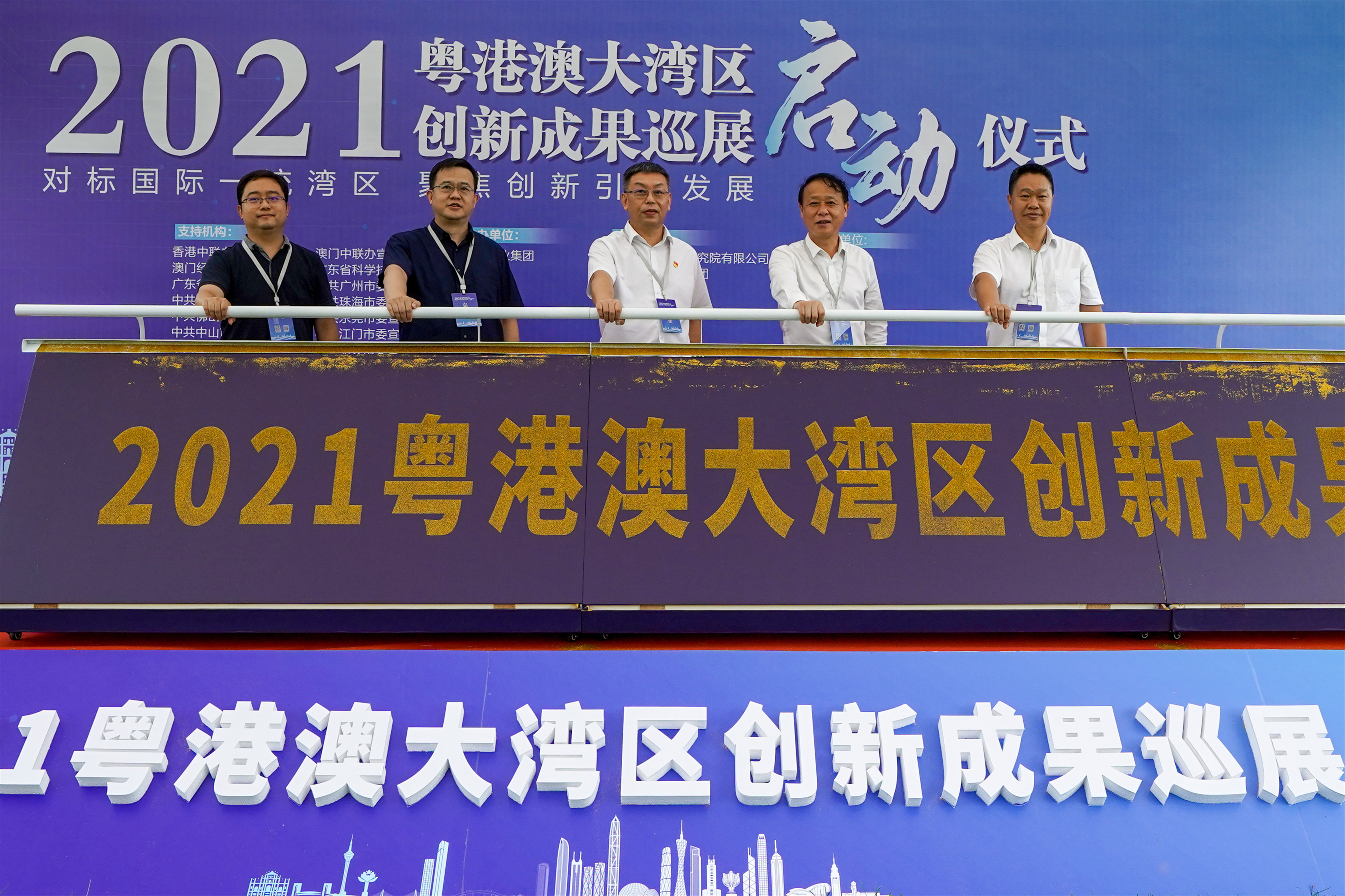 出席嘉賓共同推杆,為2021粵港澳大灣區創新成果巡展揭幕。