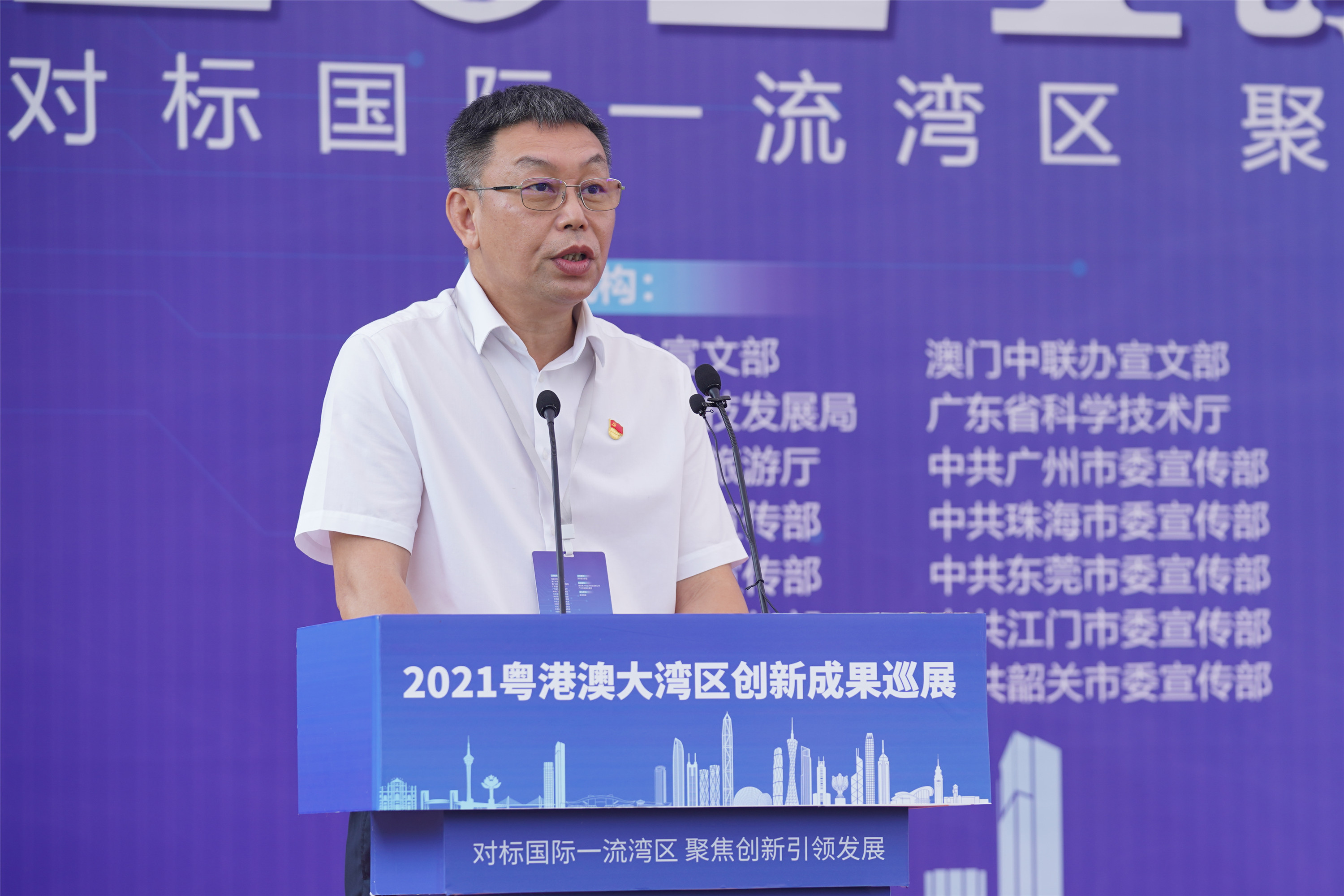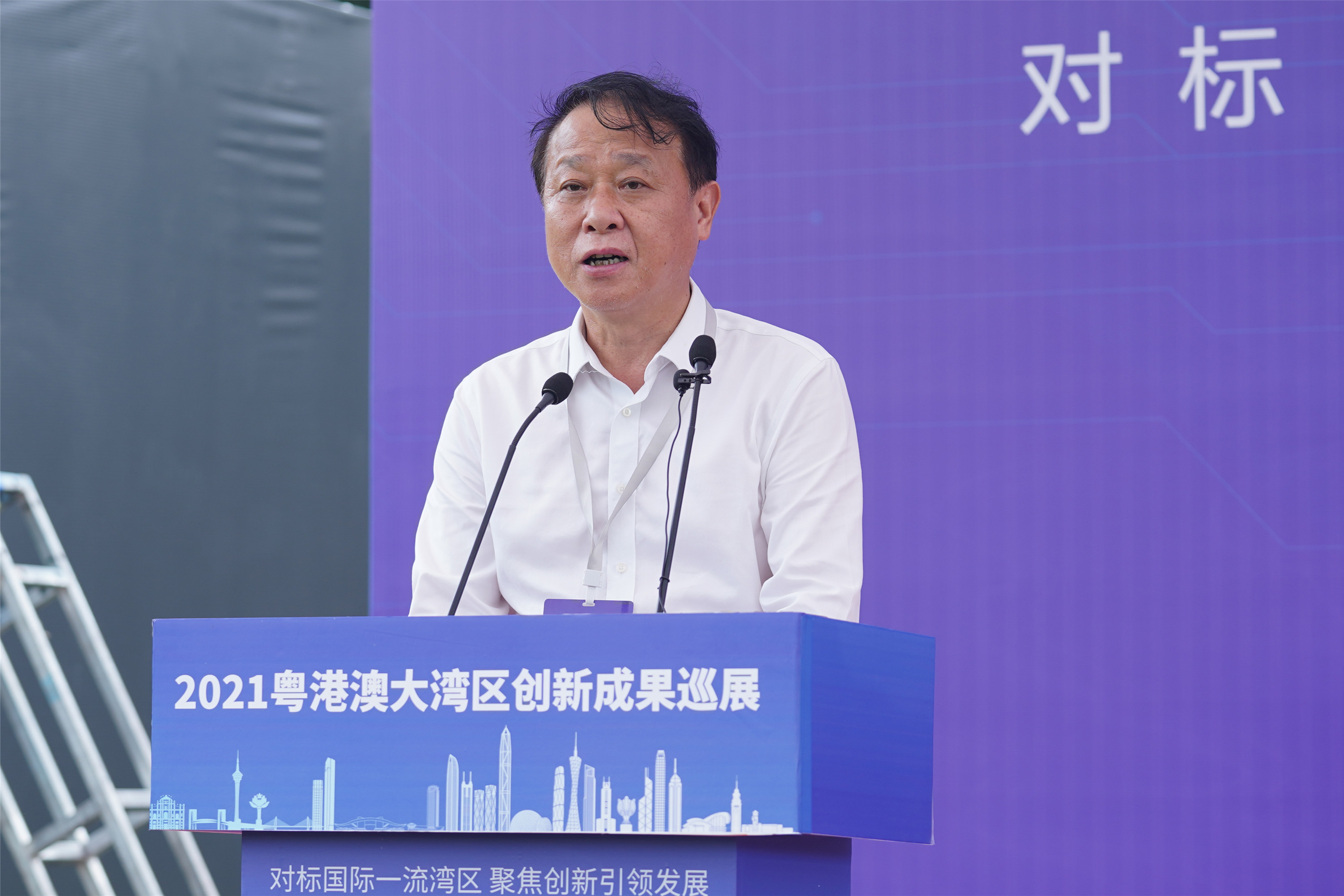 廣東省科學技術廳二級巡視員何棣華代表廣東省科學技術廳對巡展啟動表示熱烈的祝賀。他指出,本次巡展活動聚焦粵港澳大灣區國際科技創新中心建設,充分展示大灣區創新發展成果,必將對粵港澳三地科技創新成果的宣傳推廣起到重要推動作用。在中國共產黨成立百年之際,開展創新成果巡展活動,是向黨獻禮,正當其時,意義重大。