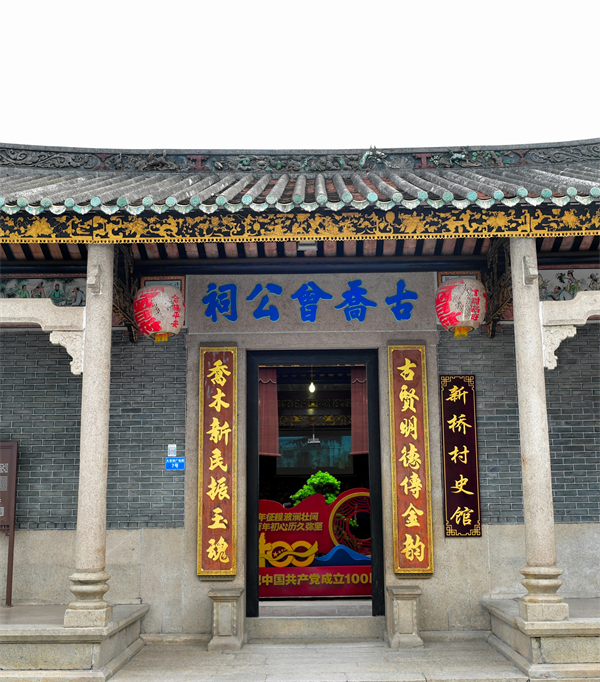 新橋社區歷史悠久,人文底蘊深厚,轄區內僅不可移動文物多達十七處,以曾氏大宗祠為代表的古建築十餘處,是新橋珍貴的文化遺產。為落實區六屆六次黨代會關於「推進村史館建設」的工作部署,在立項之初,新橋社區選取古建築群中保存完好的古祠堂——古喬曾公祠作為新橋村史館的場地。古喬曾公祠緊鄰廣東省和深圳市文物保護單位曾氏大宗祠,始建於清代,佔地面積約370平方米,三開間三進深布局,是一座典型的廣府祠堂,也是最能體現廣東傳統文化的建築之一。