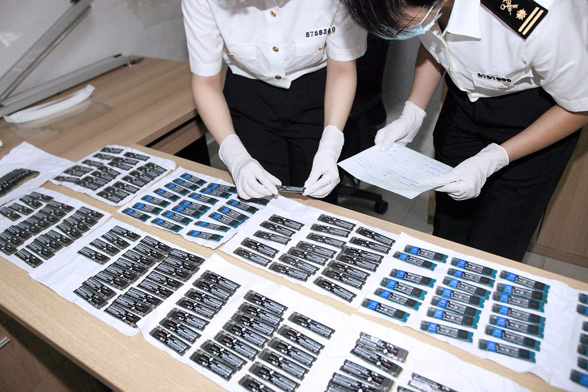 海關關員清點查獲的固態硬盤。(林昌鋒攝)