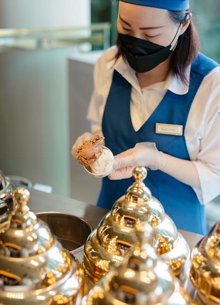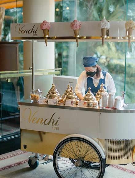 令記者覺得更驚喜的是餐廳設有Venchi Cioccogelateria意大利雪糕車,提供四款口味的意式手工雪糕:朱古力松露、榛子、牛奶朱古力脆片和芒果。在雪糕車前等待取脆筒,與自己在雪糕櫃一下子拿回到餐桌是完全不一樣的體驗,別具儀式感。