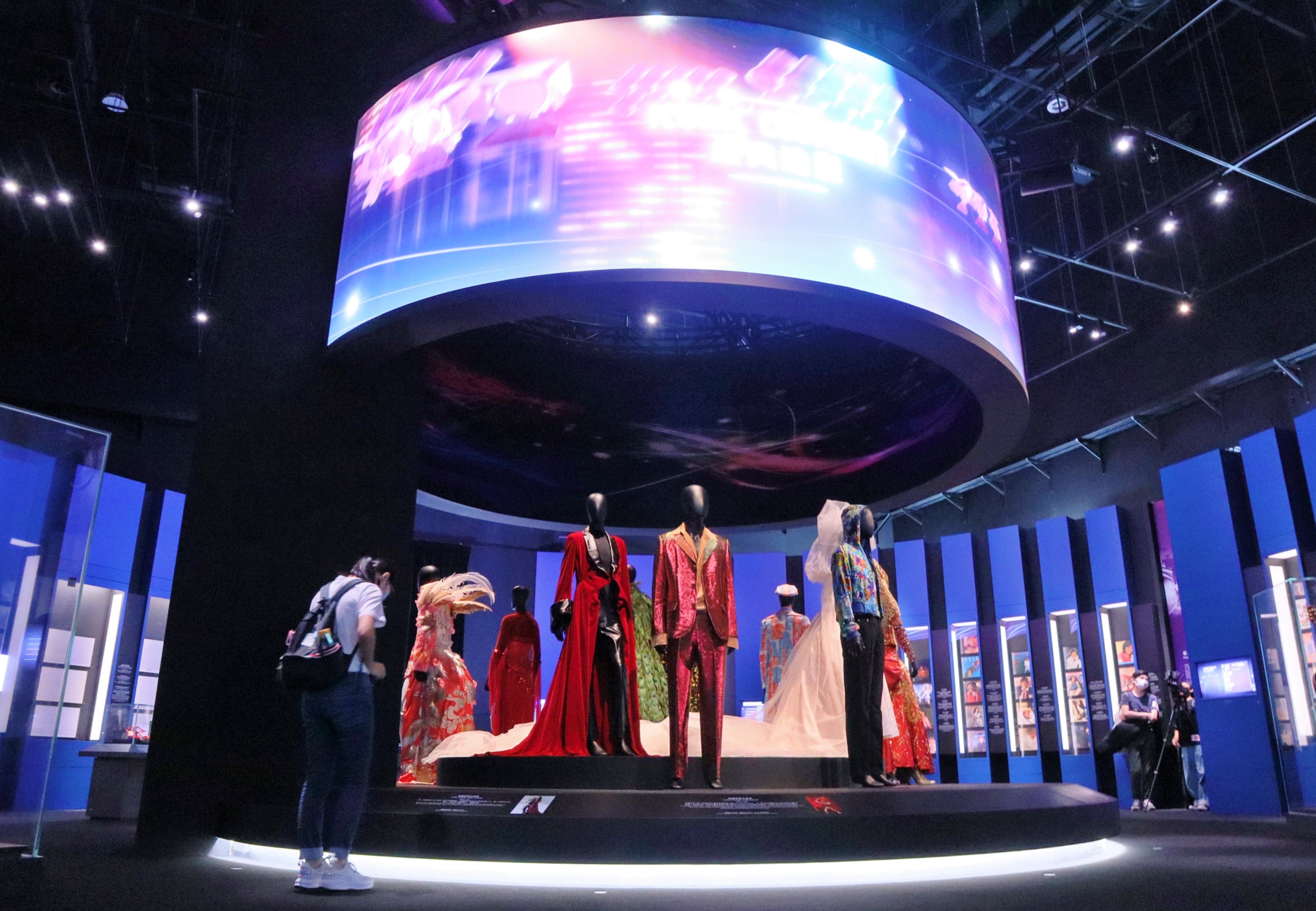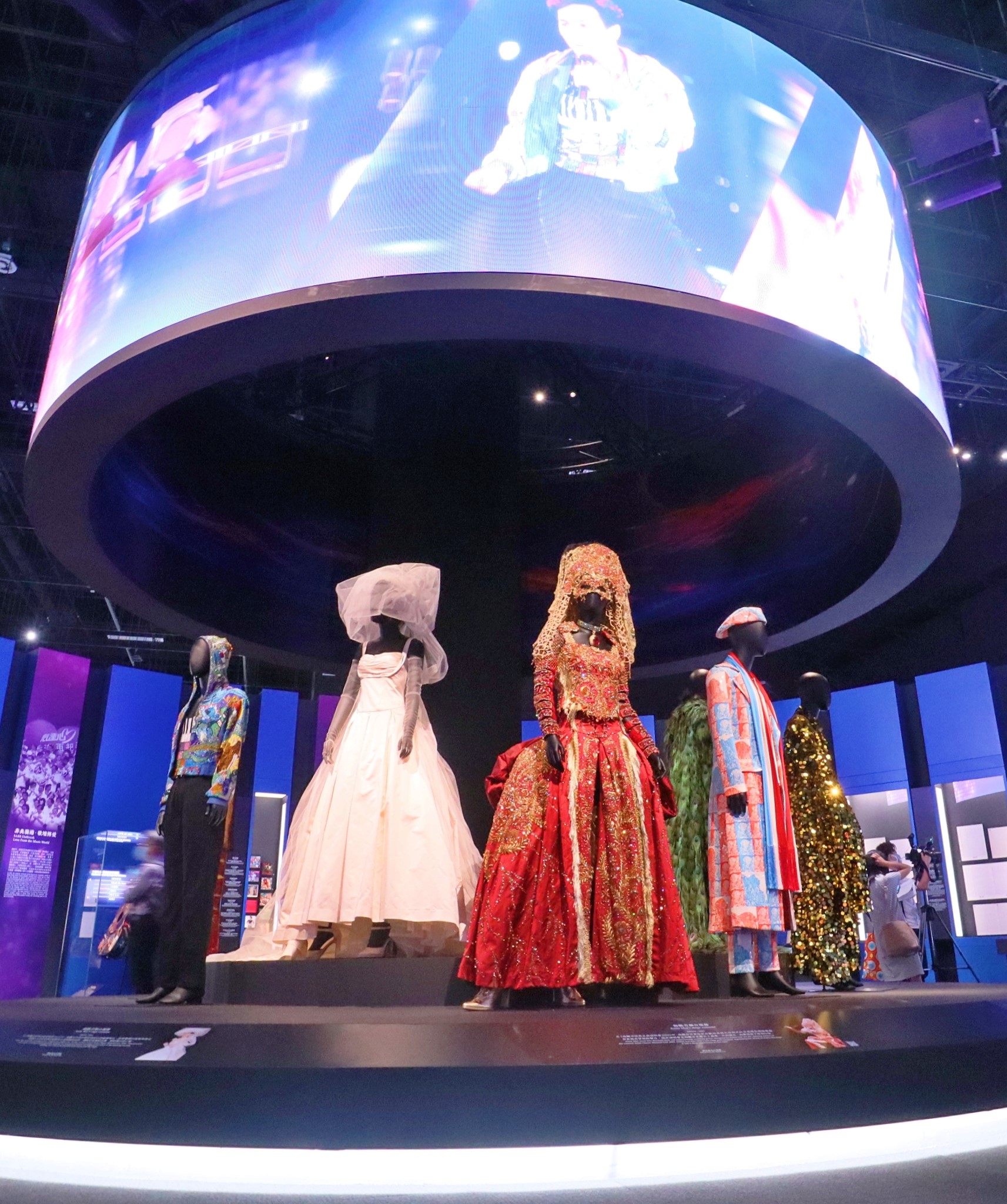 館方將舞台服裝展示位打造得恍如演唱會現場般,天花板的電視展示了歌手的演唱會片段。