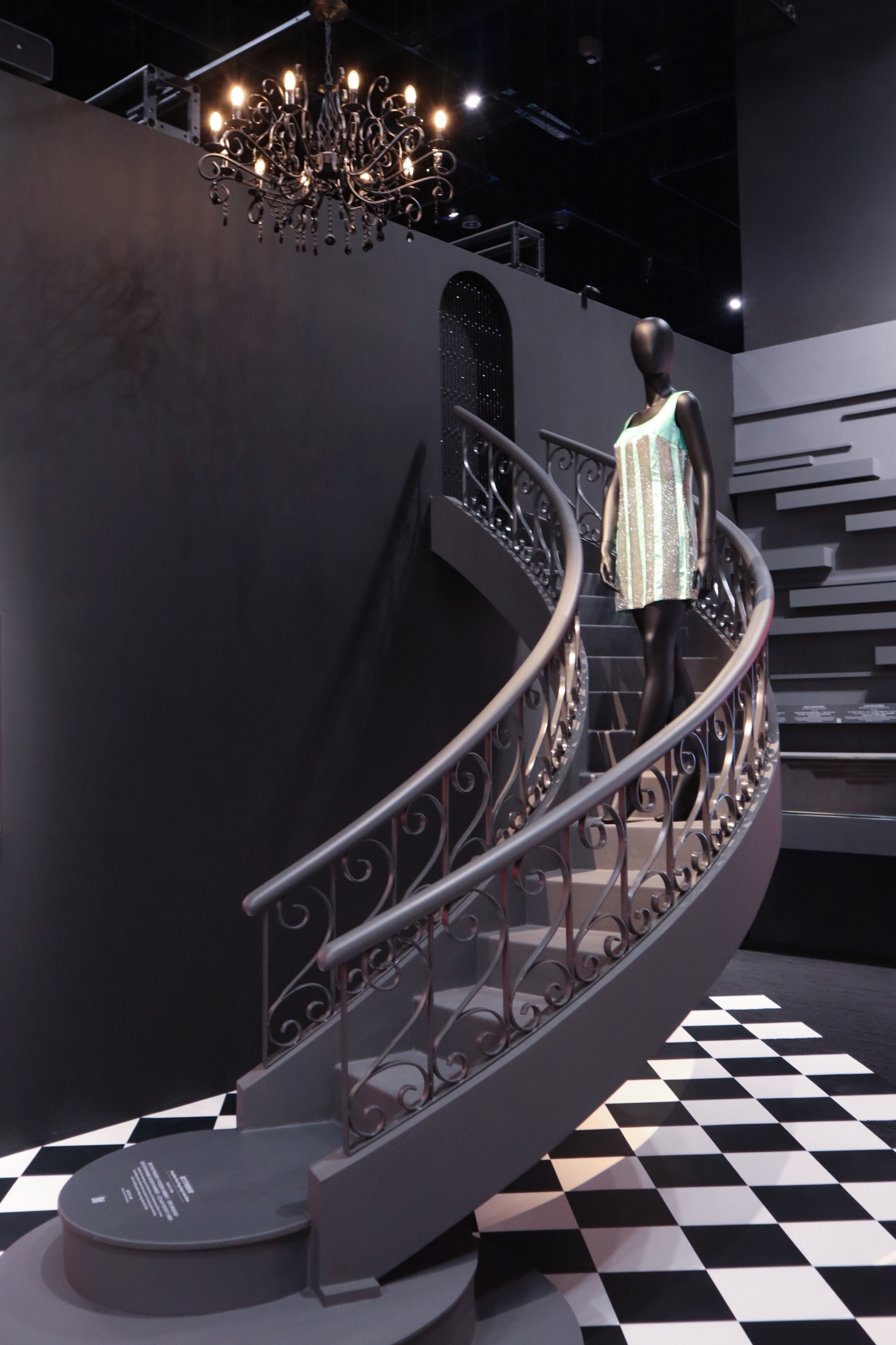二次大戰後,香港流行粵劇,也因上海文藝人士南移而興起國語歌舞片及國語歌曲。另外,當時年輕一代渴慕西方派對文化,歐西流行曲也被年輕人視為時尚產物。其中蕭芳芳是1960年代帶領潮流和形象摩登的偶像派演員,展品「蕭芳芳的迷你裙」是她曾於粵語歌舞片中穿着過的,珠片迷你裙也是當年的潮服代表,展場更設置了水晶燈及特色旋轉樓梯,別具復古情懷。