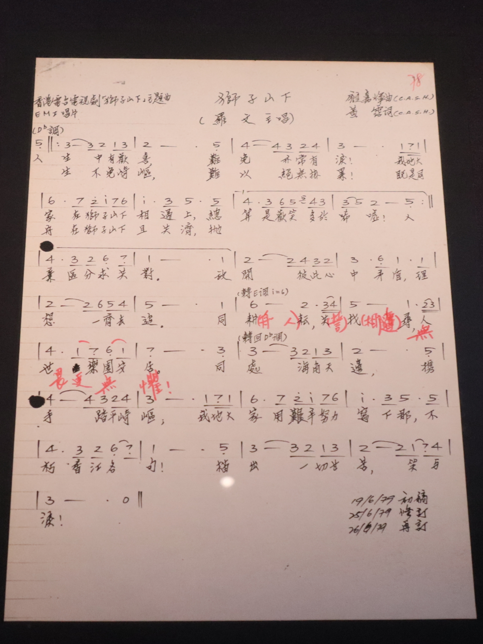 《獅子山下》歌詞手稿,1979年。