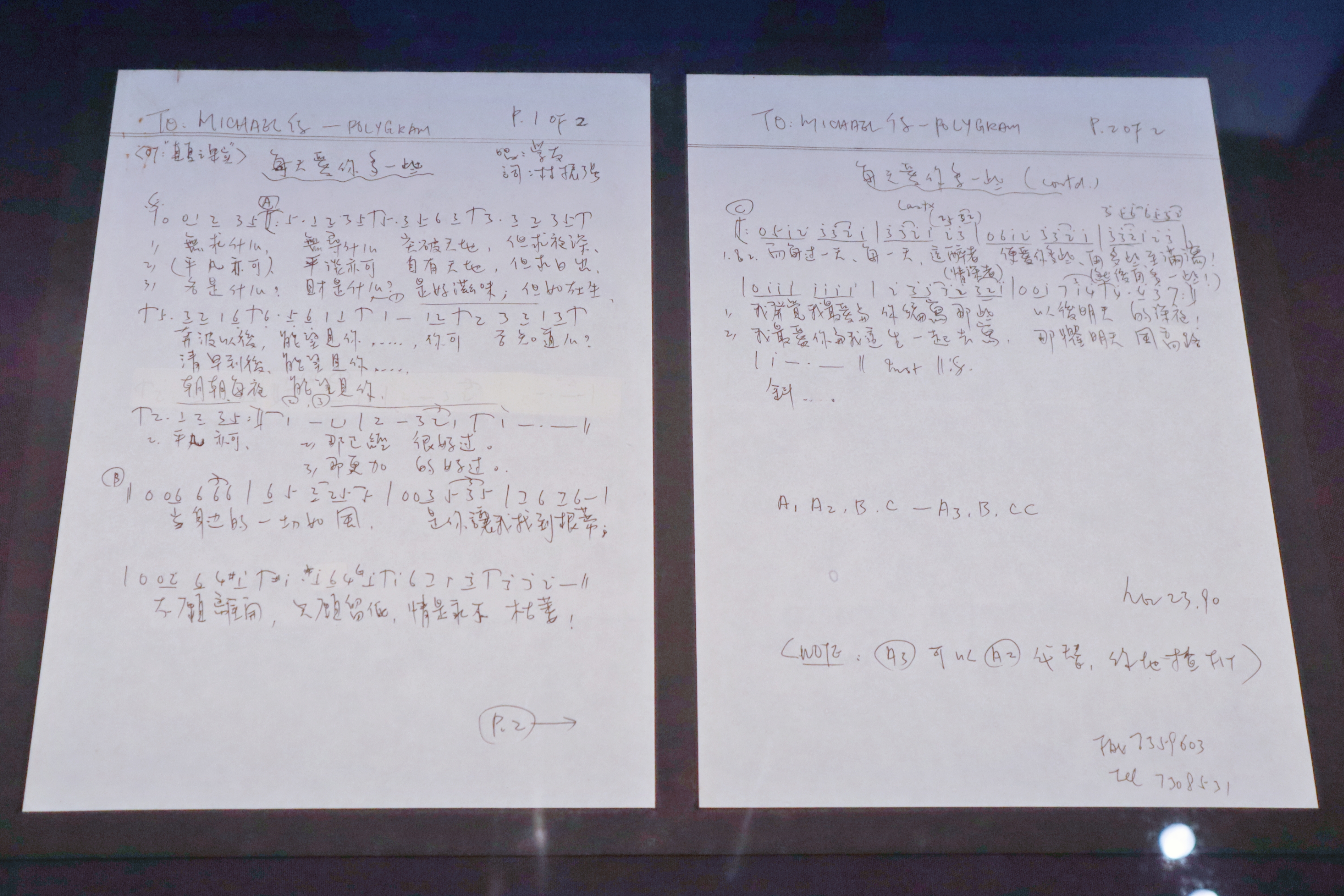 《每天愛你多一些》歌詞手稿。