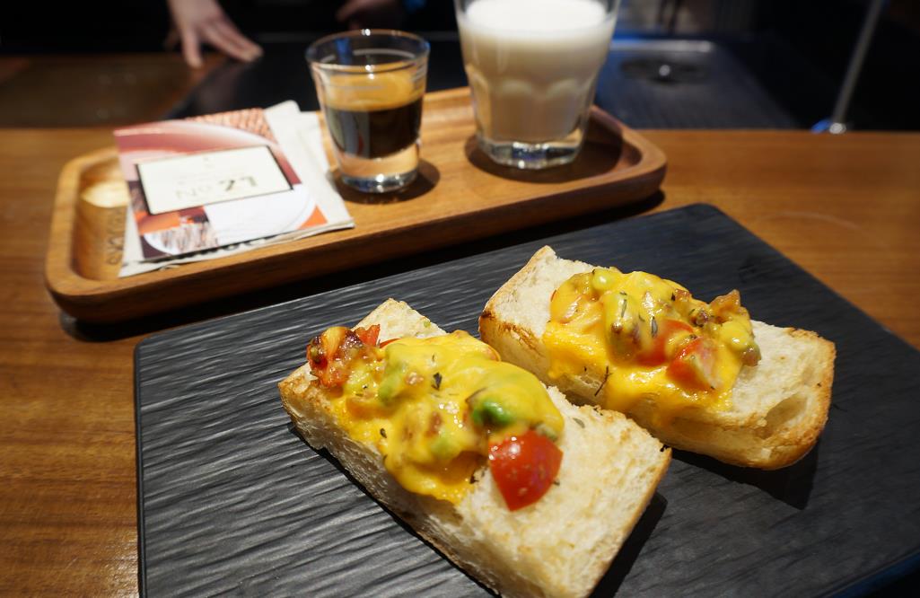 最二道菜是記者友人最常到星巴克點的特濃咖啡燕麥奶,以Starbucks Reserve MicroBlend #21咖啡豆製作這杯融合燕麥奶的咖啡,有別於一般分店使用的特濃咖啡,令咖啡呈現更鮮明的醇厚口感和麥香。配搭意式煙肉牛油果蕃茄芝士配法包這款經典意式小食,令人食指大動。