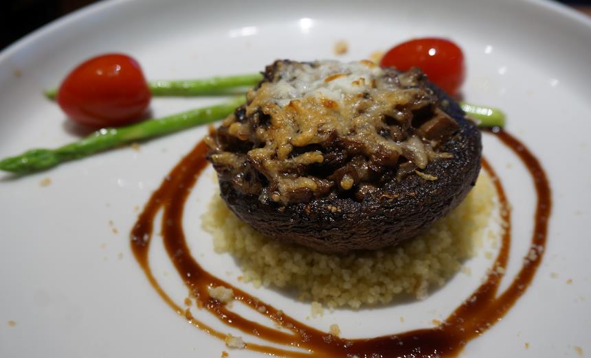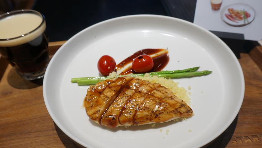 至於主菜則有兩款可選:慢煮嫩雞胸配燒烤醬或芝士焗大啡菇配黑醋汁,後者還會配搭非州小米,這款小米在港尚未普及,而且熱量低,味道配上醬汁也很不錯,值得一試。主菜配搭的飲品是氮氣冷萃咖啡,加入氮氣後的泡沫更綿密,散發淡淡的香甜朱古力風味。
