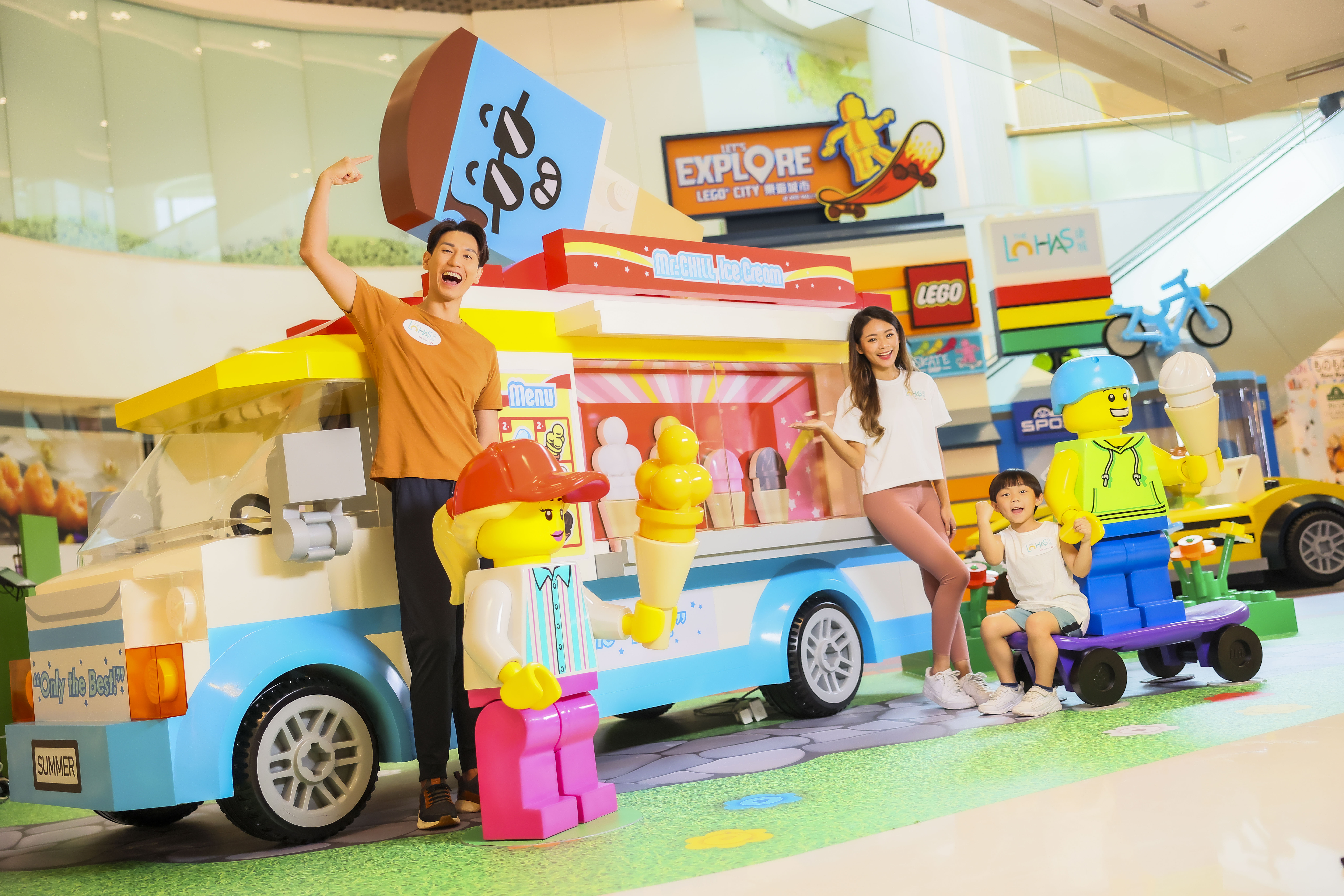 商場化身成樂高單車徑,單車徑旁設有雪糕車,齊齊為夏日消暑降溫。
