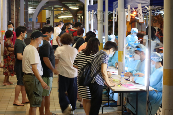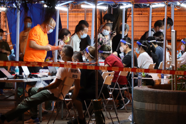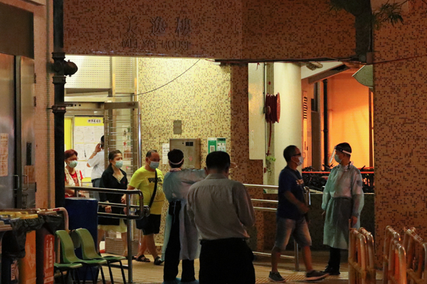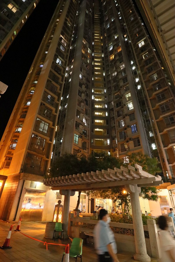 而政府今日亦引用《預防及控制疾病(對若干人士強制檢測)規例》(第599J章),作出限制與檢測宣告(下稱「相關宣告」),自下午7時起限制在東涌指明「受限區域」(即東涌逸東街8號逸東二邨美逸樓)內的人士須留在其處所並接受強制檢測。受檢人士須在其處所等候,直至「受限區域」內所有已識別的受檢人士完成檢測,而相關檢測結果亦已獲大致確定,方可離開其處所。政府目標是在明日上午約7時左右完成此行動。(圖源:中新社)