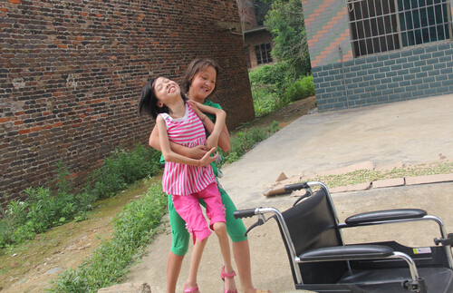 这时,年仅9岁的何芹姣站了出来。从2010年秋天开始,她主动承担起义务背着何颖慧上学的责任。“当时我也没想那么多,只是觉得她需要帮助。”面对提问,何芹姣羞涩的笑了。