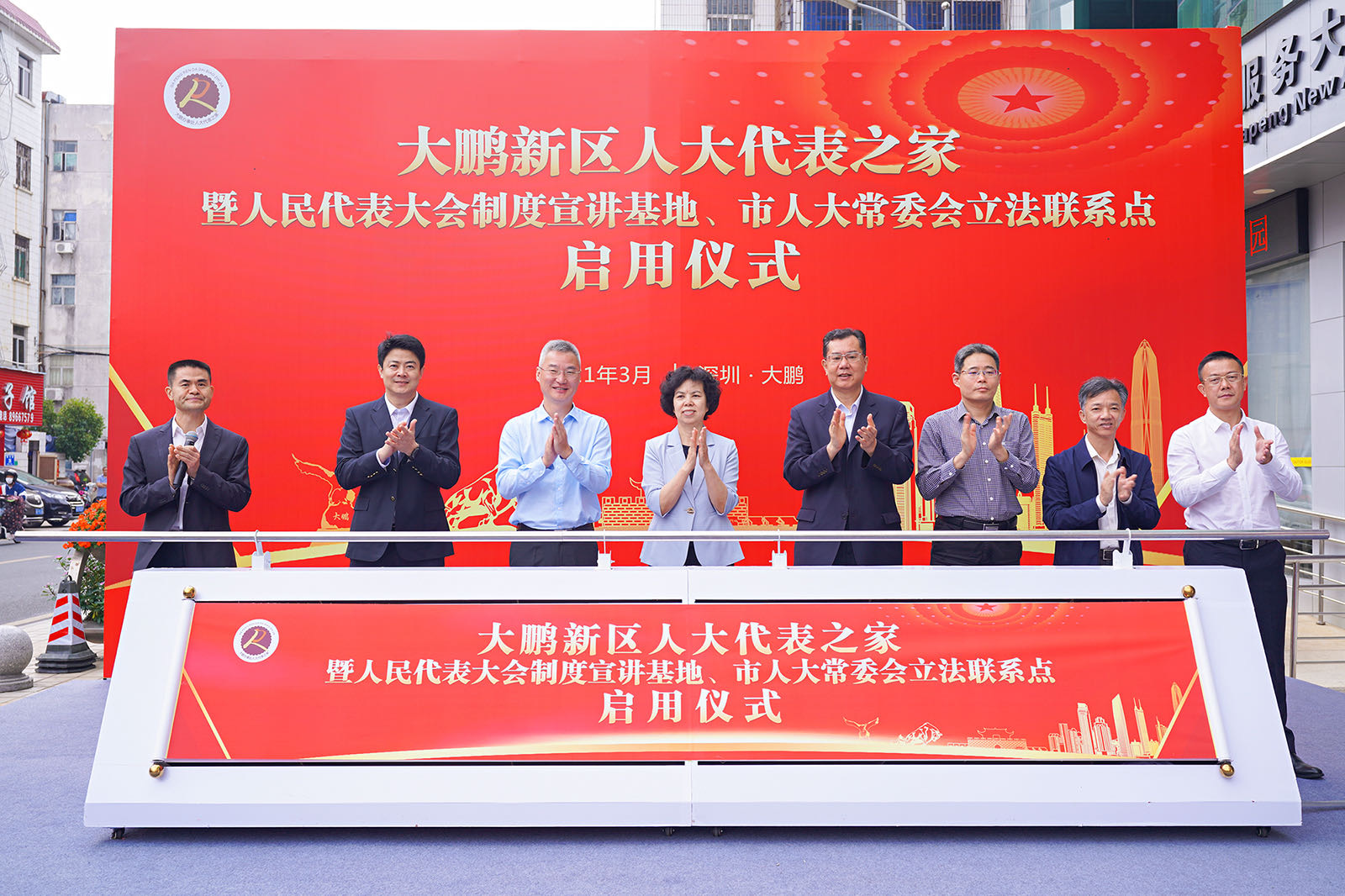 3月18日,深圳市大鵬新區「人大代表之家」暨人民代表大會制度宣講基地、市人大常委會立法聯繫點啟用儀式在大鵬辦事處舉行。據悉,這是全市首個區街合一的「人大代表之家」。市人大常委會常務副主任、黨組副書記羅莉,市人大常委會選聯任工委主任王京東,市人大法制委員會副主任委員王曉東,大鵬新區黨工委書記楊軍,大鵬新區黨工委副書記、管委會主任劉廣陽,龍崗區人大常委會副主任郭雁通,大鵬新區黨工委委員、綜合辦公室主任王繼良參加活動。