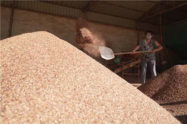 在內丘縣柳林鎮小楊莊村,村民在認真地篩選著酸棗仁。一堆堆成山的酸棗仁鋪就村民們發家致富路。(劉繼東 攝)