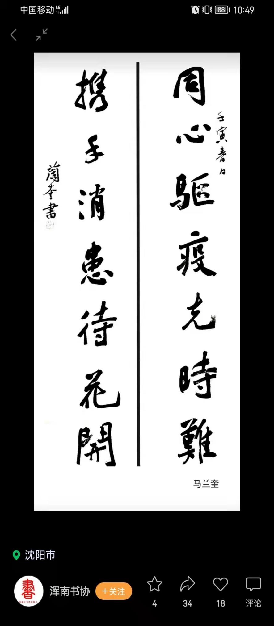 新一輪疫情襲來,瀋陽全市上下同舟共濟,眾志成城,全面打響防控疫情阻擊戰。由瀋陽渾南區委宣傳部主辦,渾南區新時代文明實踐中心、渾南區書法家協會承辦的「眾志成城 同心戰疫」——渾南區抗疫主題書法作品網絡展日前正式開展。