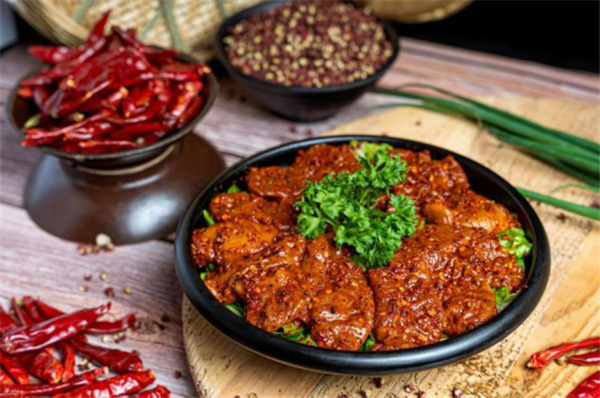 松板肉取自豬頸兩側珍貴部位,肉脂如雪花般均勻分佈。斜切薄片,加入秘制調料,肉質鮮嫩,爽口順滑;香辣脆肚市場精選脆爽兔肚,加入秘制調料,麻得爽口,辣得過癮;鳳尾腰花新鮮豬腰,冰鎮後斜切成花狀。口感鮮嫩,嚼勁十足,富含多種人體所需微量元素;鱔魚絲新鮮土鱔魚,川渝江湖菜名角。剔骨後切絲,混入秘制調料,色澤油亮,脆嫩鮮美。竹蓀 (清湯必燙菜)深圳/上海地區特供菜。幹竹蓀去除筋膜後泡軟,浸泡後入鍋,富含多種維生素及礦物質,一口吃盡春天的鮮美;重慶香腸選用重慶巫山高山豬肉,口感麻辣鮮香。吃到了它,就像回到了家;重慶炸包面和廣東的炸雲吞異曲同工之妙,包面皮裹入秘制佐料後下鍋油炸,外皮“哢滋哢滋”,內在鮮香濃郁;重慶瓢兒粑瓢兒粑,重慶沿江一帶的美食攤王者,一口油鍋,一把方形的瓢、一盆調好的料,米漿裹入蘿蔔絲,下鍋油炸,外焦內嫩,蘿蔔絲麻辣香甜;重慶三角粑不少重慶人的童年記憶,都從街頭販賣的三角粑開始。發酵後的米漿,放入三角模具烤至金黃,口感軟糯香甜;重慶炸洋芋片,重慶大街小巷都會賣的洋芋片。選用重慶巫山當地高山土豆,自然風乾後油炸,口感酥脆家家必備的零食小吃。