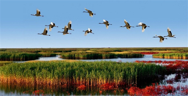 遼寧省盤錦市擁有大面積的蘆葦盪,這裏是丹頂鶴遷徙通道中的一個重要停歇地。在遼寧鶴類種源繁育基地可近距離接觸了生長在這裏的「濕地精靈」丹頂鶴。這裏每年有上萬隻水鳥停歇、棲息,並成為丹頂鶴、灰鶴等國家重點保護鳥類的越冬或停歇場所,是保護區內停歇丹頂鶴最大種群的棲息地,最多時達500餘只。(孫俊程 王藝橋)