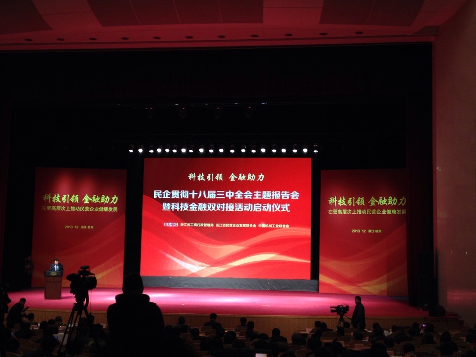 图为民企贯彻十八届三中全会主题报告会暨科技金融双对接活动启动仪式现场