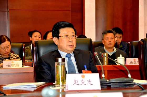 赵克志表示,完全赞成陈敏尔省长代表省政府所作的《政府工作报告》。他指出,新一届省政府领导班子是一个思想解放、攻坚克难、改革创新、团结奋进、廉政勤政的班子。主要体现在:一是坚决贯彻中央和省委的部署,始终与党中央保持高度一致,自觉坚持和维护省委的领导和权威,与省委想在一处、干在一起,互相支持、团结协作,展现了很强的凝聚力和向心力。二是思想解放、开拓创新、求真务实,在实施主基调、主战略上采取一系列创新性举措,工作抓得细、抓得实、抓得好。在经济下行压力加大、结构调整转型加快的形势下,实现了经济社会发展稳中有进、稳中有为、稳中向好,展示了很强的组织领导水平。三是通过深入开展党的群众路线教育实践活动,省政府领导班子作风发生了明显转变。班子成员迎难而上、敢于担当、狠抓落实,切实发扬“钉钉子”的精神,通过召开协调会等多种方式,有效解决了工作中遇到的诸多矛盾和难点问题,促进了思想落实、工作落实。四是领导班子团结协调,战斗力、执行力、公信力有了新的提高。有中央的正确领导,有这样的工作氛围,省委省政府一定能够团结带领全省各族干部群众,把这次大会确定的目标任务落到实处,经过三到五年的拼搏实干,把省第十一次党代会描绘的宏伟蓝图写在贵州大地上。