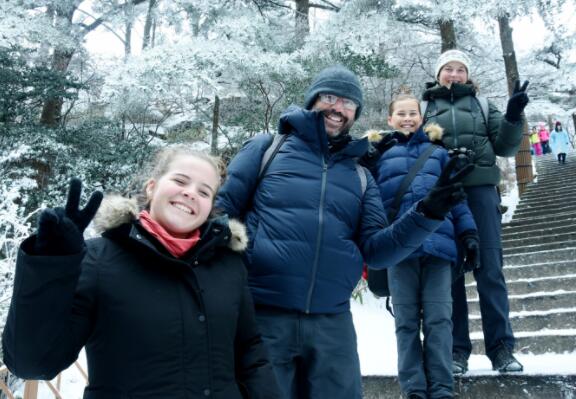 廣東游客雅文說:“聽說黃山雪景特別美,想來一次。我們一直關注黃山的官博,關注下雪的時間,一下雪,我們就馬上過來了。一個字——”美“!覺得不虛此行,特地來一趟很值得。到黃山來看雪,覺得黃山的雪景特別美,跟我們平時看到的確實不一樣。”
